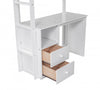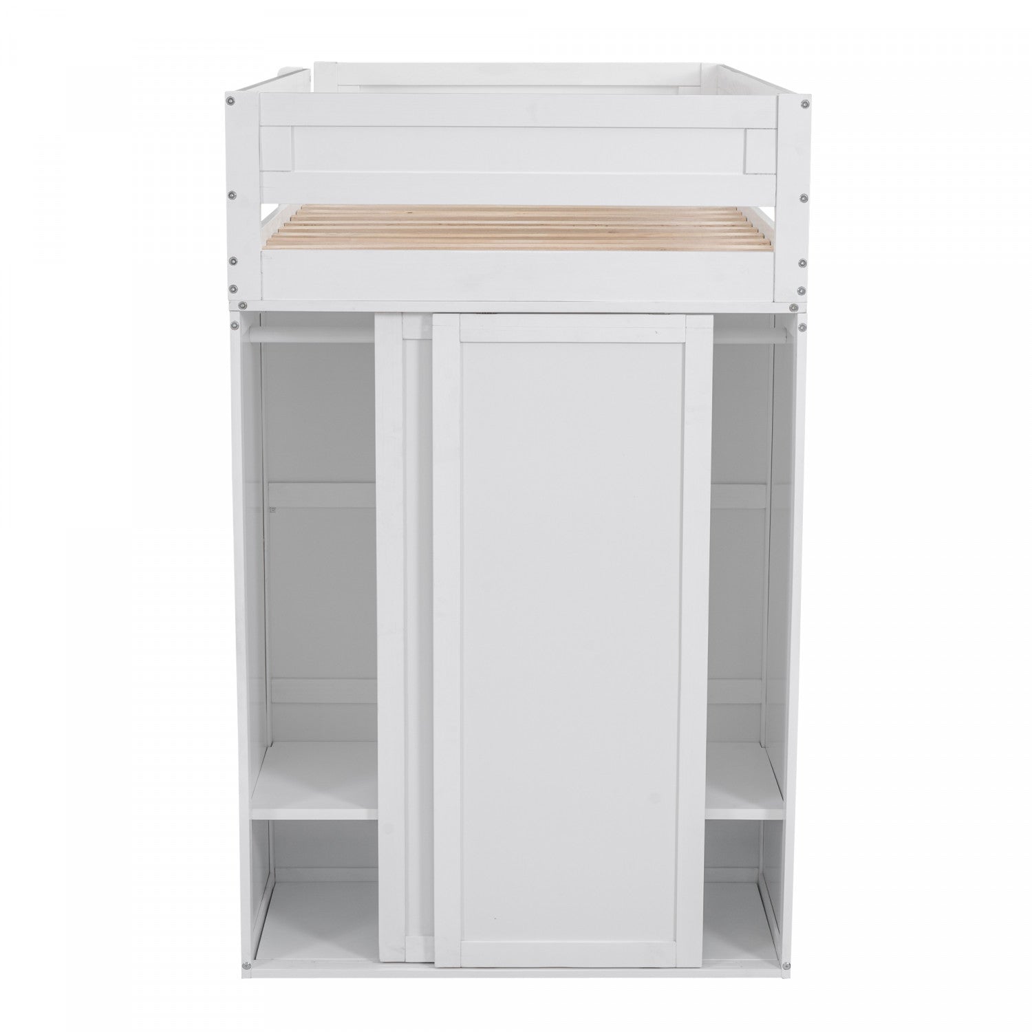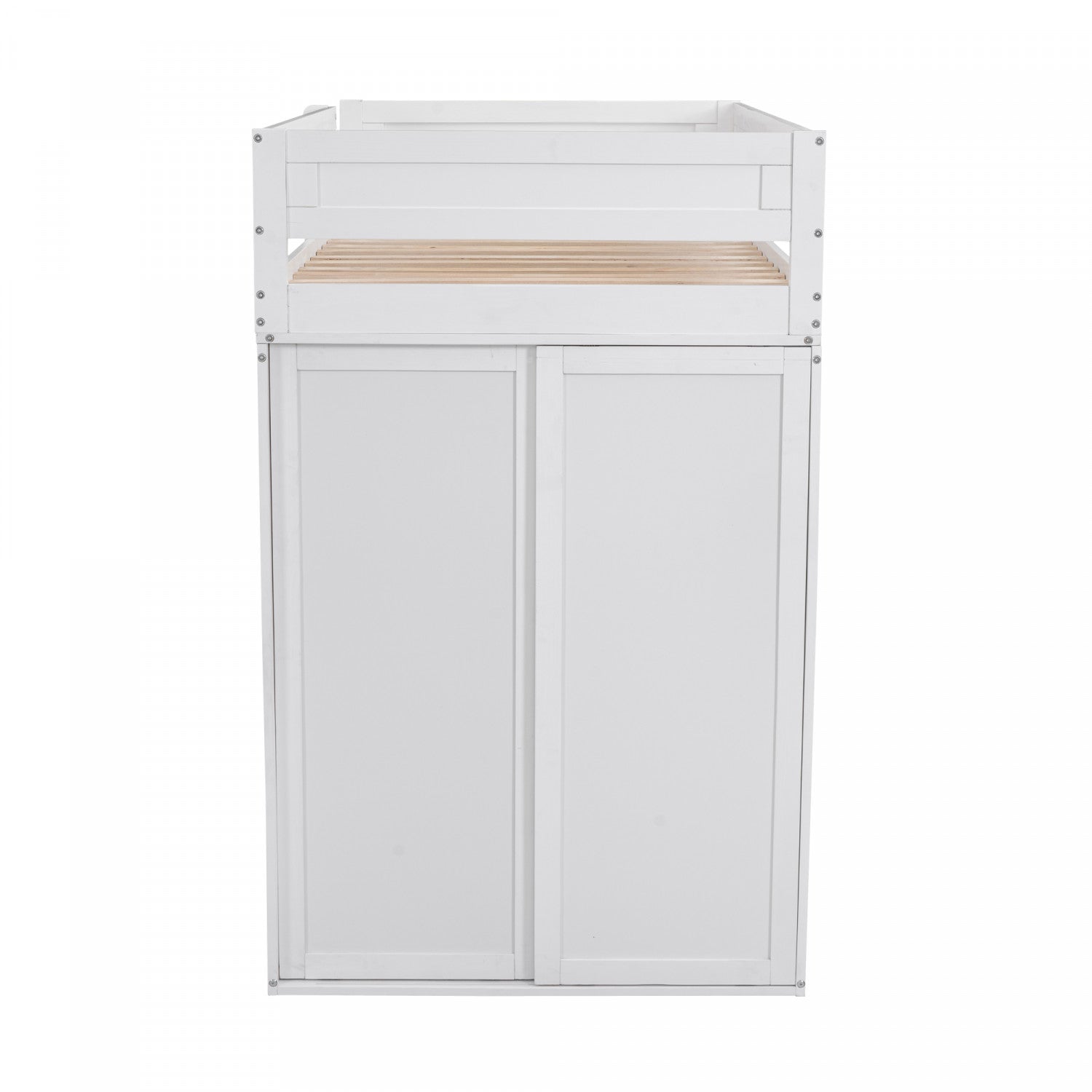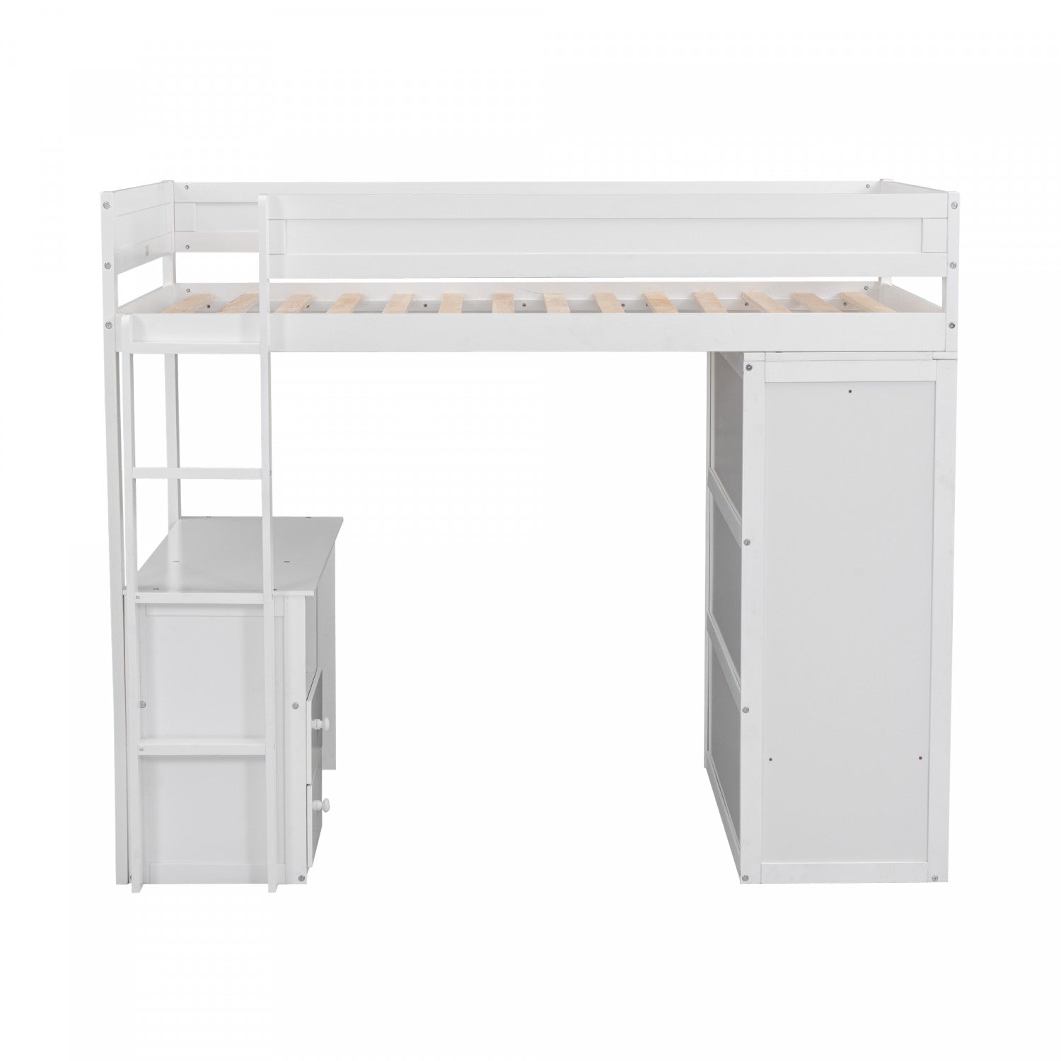 The twin loft bed is a smart all-in-one sleep and storage solution. With a built-in wardrobe, two-drawer desk, and open cabinet, this design maximizes every inch of your room. Crafted from sturdy pine wood and engineered wood in a white finish, it’s safe, stylish, and space-saving. The loft configuration opens up floor space for work, study, or creative use—no box spring required.