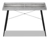 This Jeremy desk will take your office to the next level. The sides of the desktop gradually rise to meet the small hutch for a sleek look. The top of the hutch doubles as a shelf, while space underneath is divided into two storage cubbies where you can tuck away small items and keep your work surface organized. Providing support and stability is a metal base that features striking design details like tapered metal legs and slender X-shaped support bars. This laptop desk or writing table has a compact design and mid-century modern style that is a great choice if you use your living room or bedroom as an office.