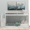The twin-over-twin floor bunk bed is the perfect choice for shared bedrooms with limited ceiling height. Crafted from solid pine and engineered wood, it offers strength, safety, and versatility. Its low-profile design ensures safe sleeping for younger children, while the wide 2-step ladder features built-in storage for added functionality. With full-length guardrails and sturdy slats, no box spring is needed. The clean white finish and compact footprint make it ideal for any kids' room or guest space.
