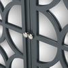 The double door cabinet combines elegance and practicality with its solid wood frame and mirrored panel design. Featuring beautifully crafted curved diamond patterns on the doors, it brings a touch of sophistication to any room. The reflective finish opens up spaces and brightens interiors, while sturdy firwood construction ensures lasting durability. Inside, adjustable shelving provides flexible storage for a variety of items, making it both stylish and functional. Perfect for contemporary homes, this cabinet is designed to enhance your decor effortlessly.