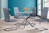 Float beside your dining table with the fabulous Julius Dining Chair. A continuous curved chrome-finished base supports the foam-padded back and seat cushion. The stylish design features a chic profile, a tall back with stitch accenting, and a soft grey faux leather covering that is both supple and easy to clean. Ideal for any modern dining room, the Julius pairs well with a variety of modern, contemporary, and glam dining tables.