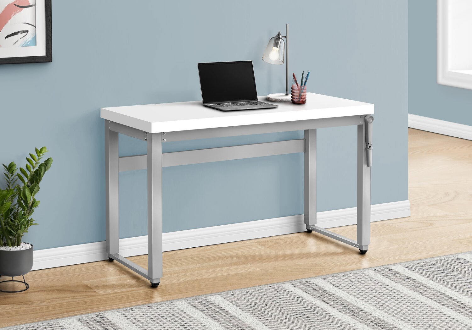 Stay productive while giving yourself room to move. With this Kai desk in your office, you won’t have to neglect work or study when you want to stretch your legs. Simply change the height of the desk with the easy-to-use adjuster, which seamlessly converts it from a regular desk to a standing one. The durable metal legs create a solid base, and the roomy work surface provides lots of space for all your supplies. The Kai is a unique, innovative way to adapt your workspace for working, studying, creating art and so much more.