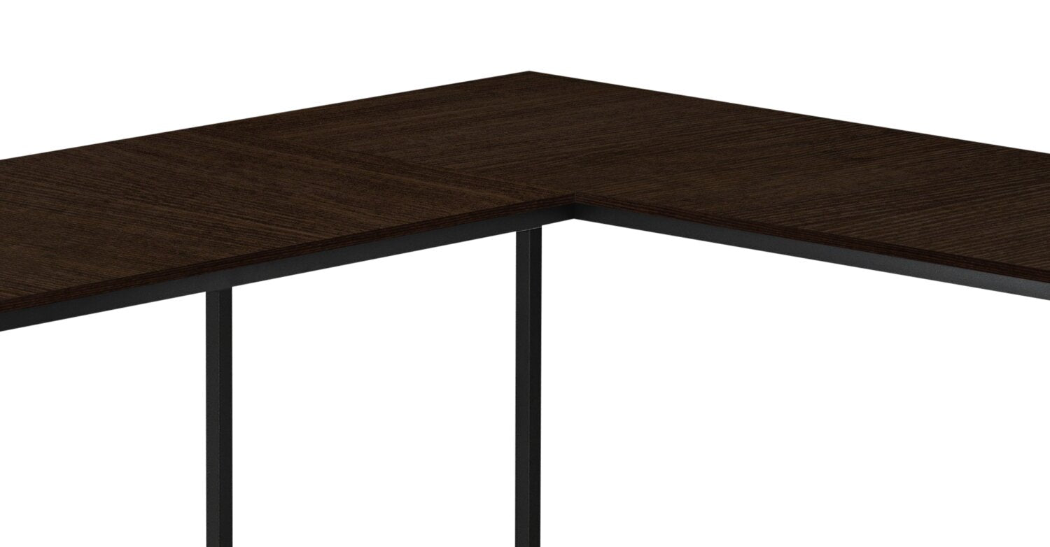 Delivering the best of both worlds, this Karter desk is both spacious and compact, with a streamlined style that’s a great choice for smaller offices. Finished in a bold laminate, the large desktop easily accommodates everything you need to be productive and has room to spare for displaying decorative items. Supporting the desktop is a slender metal base in a complementary finish. The open design of the metal base leaves plenty of room underneath to stretch your legs and place a computer tower. Put this L-shape designed computer desk in a corner to maximize space.