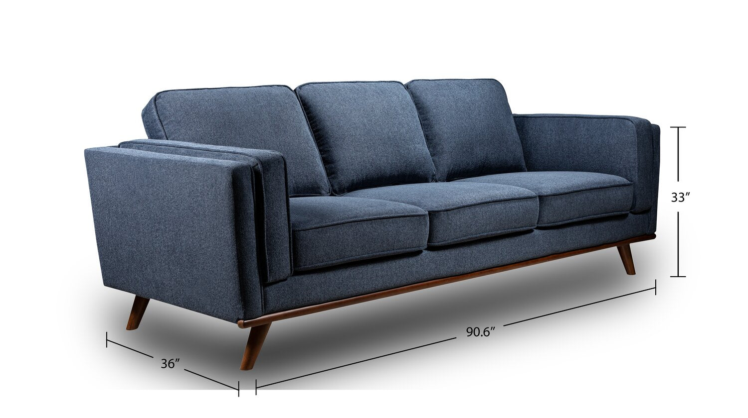Width: 90.6" (230.1 cm) Height: 33" (83.8 cm) Depth: 36" (91.4 cm)