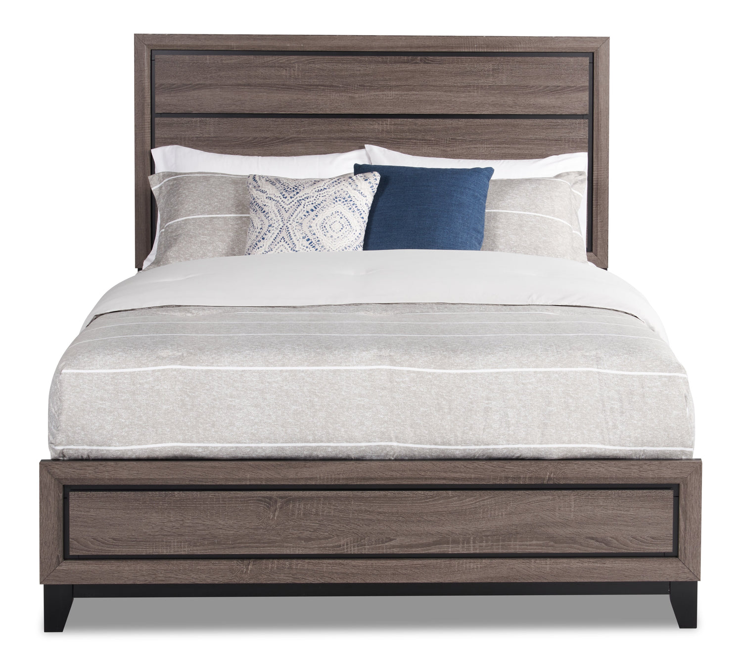 Give your bedroom upscale, urban charisma with this Kate queen bedroom package. Throughout this set, the smoky grey-brown colour creates a character-rich canvas for you indulge in. From the towering headboard to the plentiful storage spaces, a clean, minimalist motif helps these pieces flow together and shows off their beauty. Finally, the dark aprons and tapered legs create a two-toned look that takes this style to an even higher level of luxury.