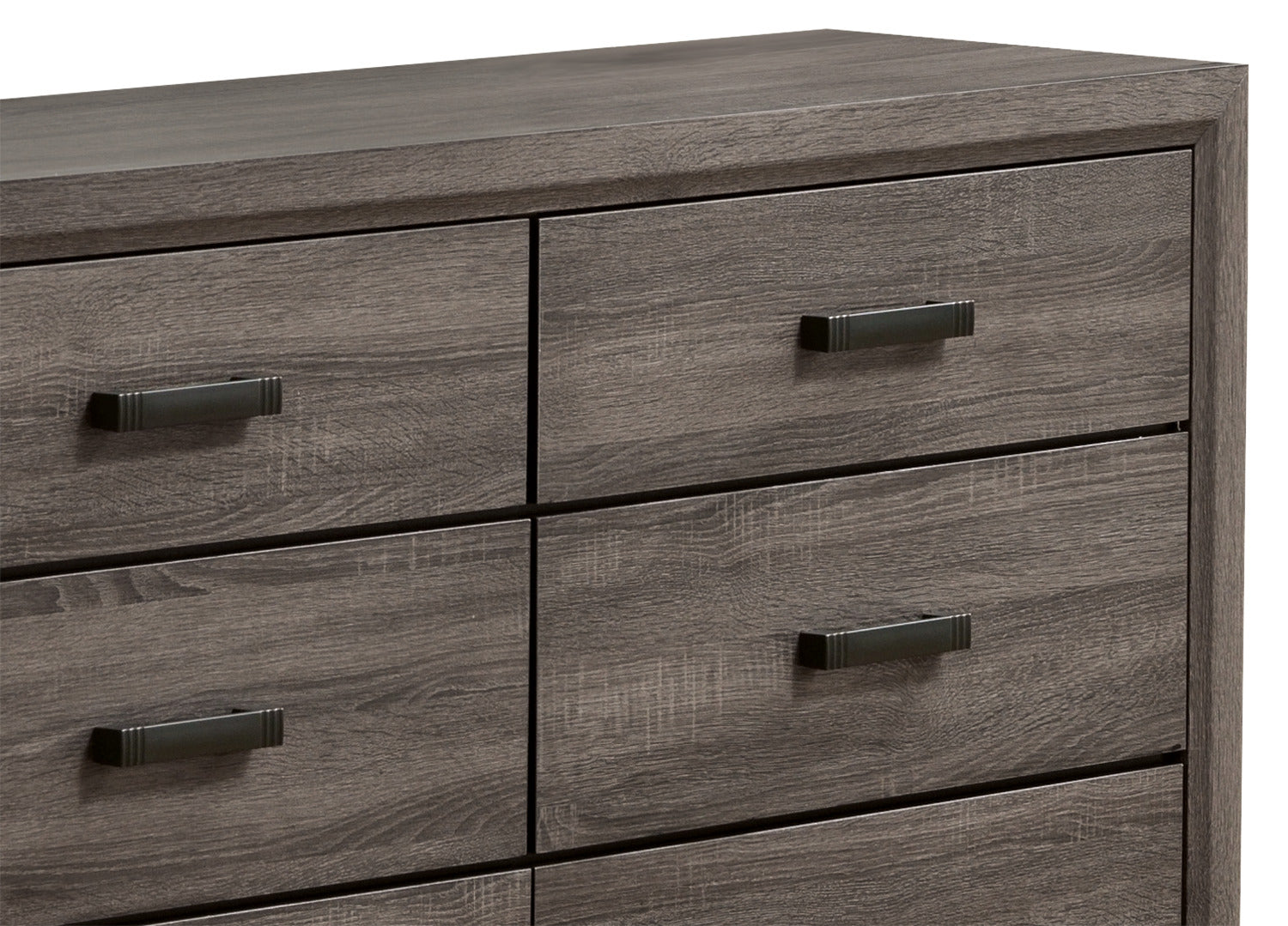 Give your bedroom upscale, urban charisma with this Kate dresser. The Asian hardwood frame is finished in a smoky grey-brown colour, creating a character-rich canvas for you to organize your clothing. The dark, tapered legs and matching black hardware create a two-toned look that takes this style to an even higher level of luxury. Enjoy this dresser on its own or pair it with the mirror from the same collection (sold separately).
