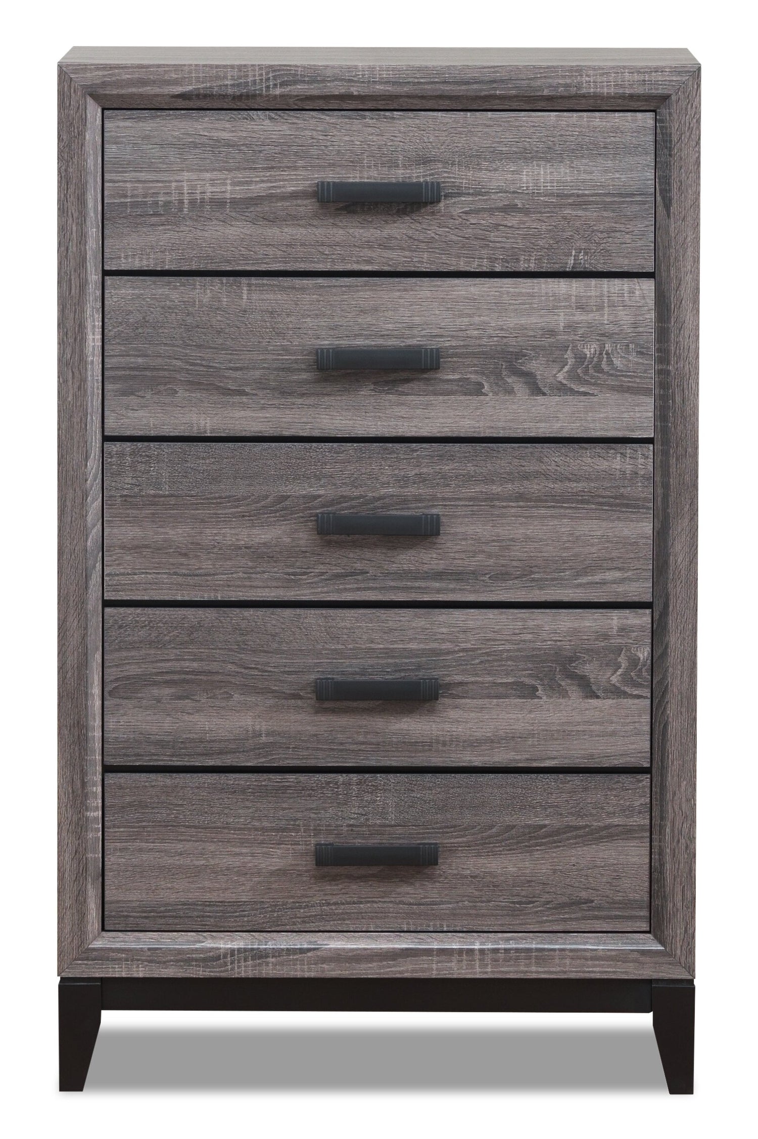 Give your bedroom upscale, urban charisma with this Kate chest of drawers. The Asian hardwood frame is finished in a smoky grey-brown colour, creating a character-rich canvas for you to organize your clothing. The dark, tapered legs and matching black hardware create a two-toned look that takes this style to an even higher level of luxury.