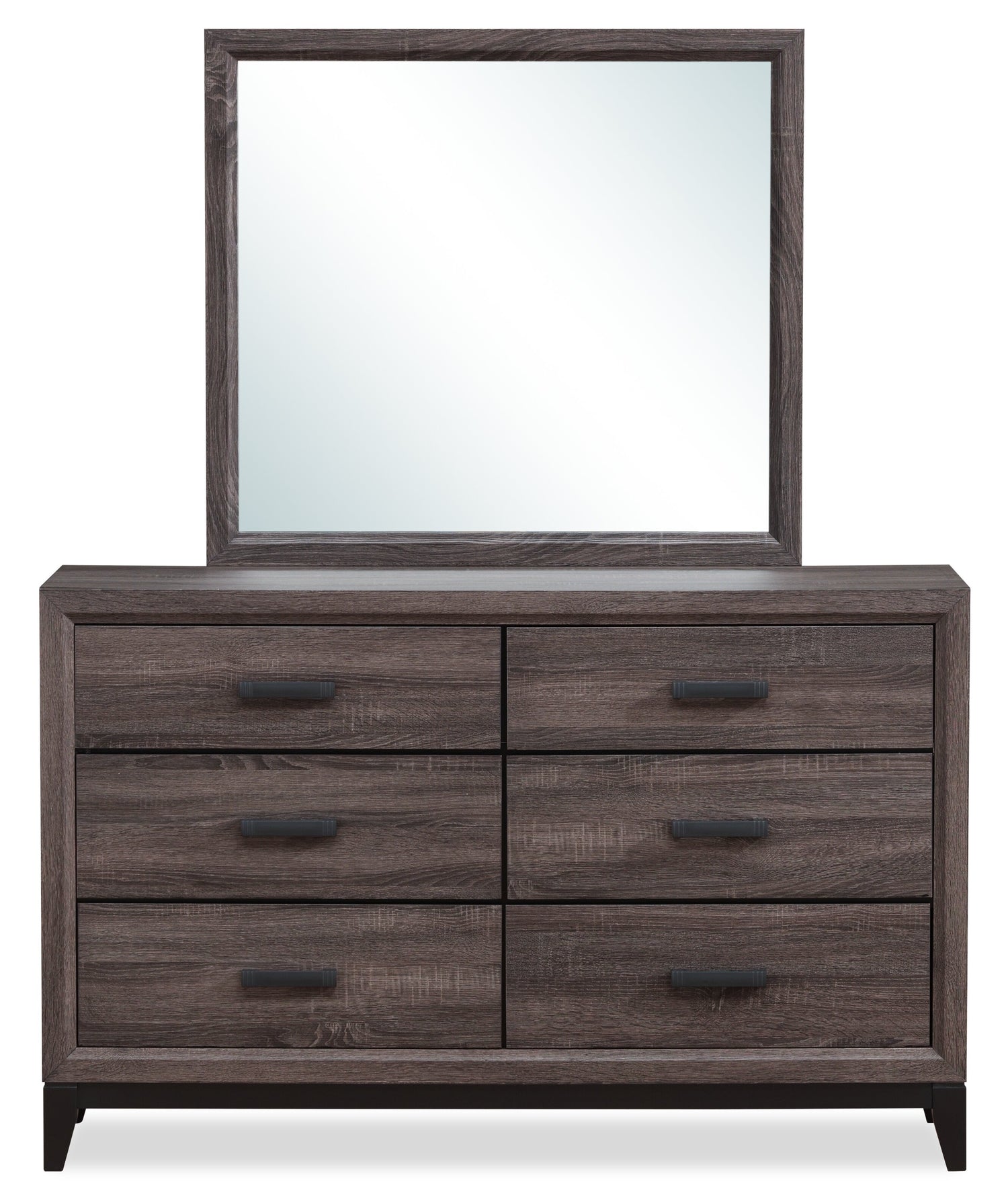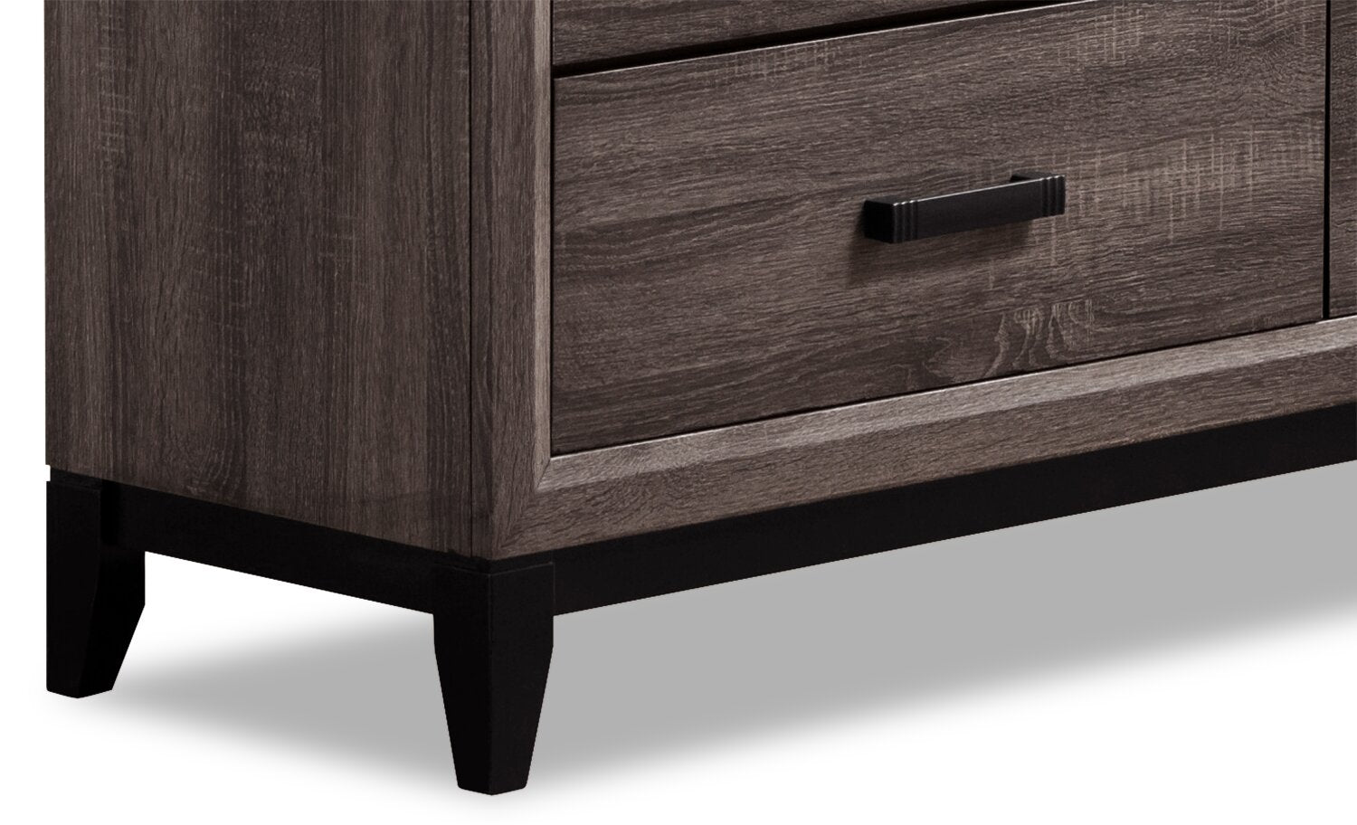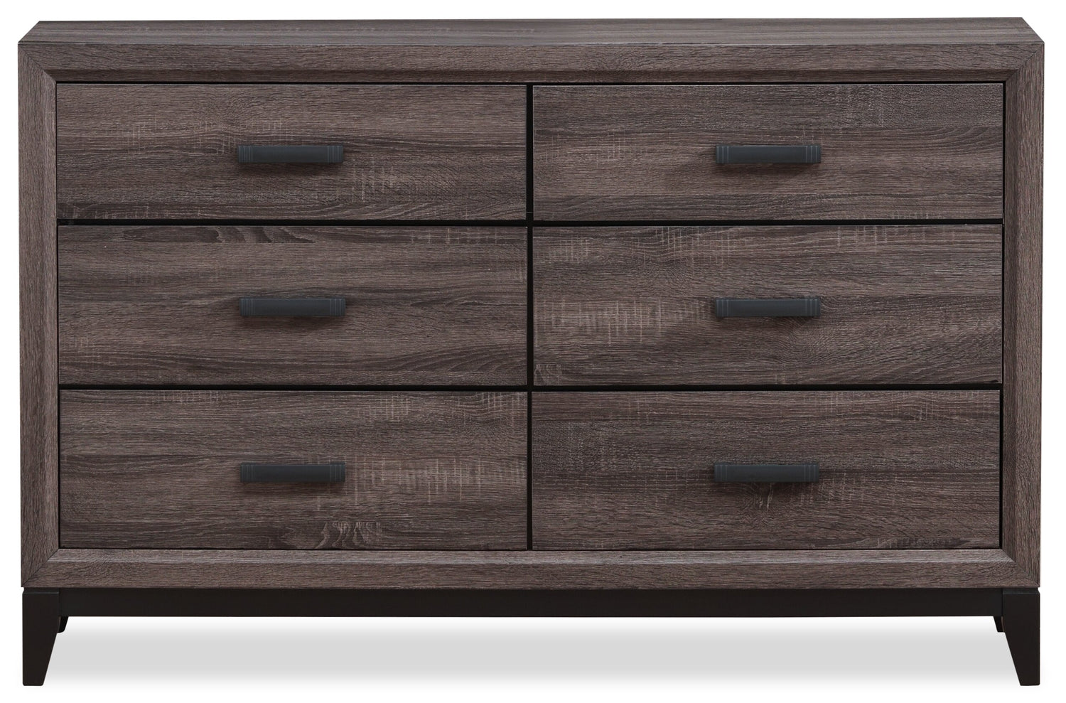 Give your bedroom upscale, urban charisma with this Kate dresser. The Asian hardwood frame is finished in a smoky grey-brown colour, creating a character-rich canvas for you to organize your clothing. The dark, tapered legs and matching black hardware create a two-toned look that takes this style to an even higher level of luxury. Enjoy this dresser on its own or pair it with the mirror from the same collection (sold separately).