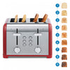 Toast or defrost your way to a delicious healthy breakfast with this 4-slice stainless steel toaster from Kenmore. From English muffins to Texas toast, this 1400W toaster accommodates everything with its extra-wide slots and self-adjusting bread guides, and the numbered dial offers 9 shade settings so you have plenty of options to suit your family's individual taste. Prepare 4 slices of bread at once, defrost toaster strudels or tarts, or toast perfect bagels with individual controls that let you choose the settings for each half separately. The attractive stainless steel housing easily wipes clean and the separate BPA-free crumb trays are completely removable for hassle-free cleanup. With double the capacity of typical toasters you can quickly make enough for a crowd, leaving you lots of time to simply sit and enjoy your breakfast. Best of all, Kenmore products are backed by a 2 year limited warranty for your peace of mind.