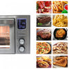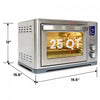 Transform the way you cook at home with this family-size countertop oven: Featuring intuitive controls, one-touch presets, and a spacious interior, this digital toaster oven air fryer with rotisserie takes the guesswork out of making your favorite meals. The 25 qt capacity gives you the freedom to bake 12 cookies, toast 6 slices of bread, reheat a 12" pizza, or even roast a whole 5-lb chicken on the rotisserie spit. Choose from 11 presets including Bagel, Reheat, Bake, Broil, Slow Cook, Pizza & Dehydrate or program your own with a huge temperature range of 80-450°F and timer cooking from 0-72 hours. Quartz heating technology with 1700W of power and regular and turbo convection fan modes ensure that you can enjoy perfectly cooked food in less time. With dishwasher-safe accessories including a wire rack, air fryer/dehydrator basket, 11.5" bake pan, rotisserie spit & handle, and removable crumb tray, this stainless steel toaster oven may just become your favorite kitchen appliance.