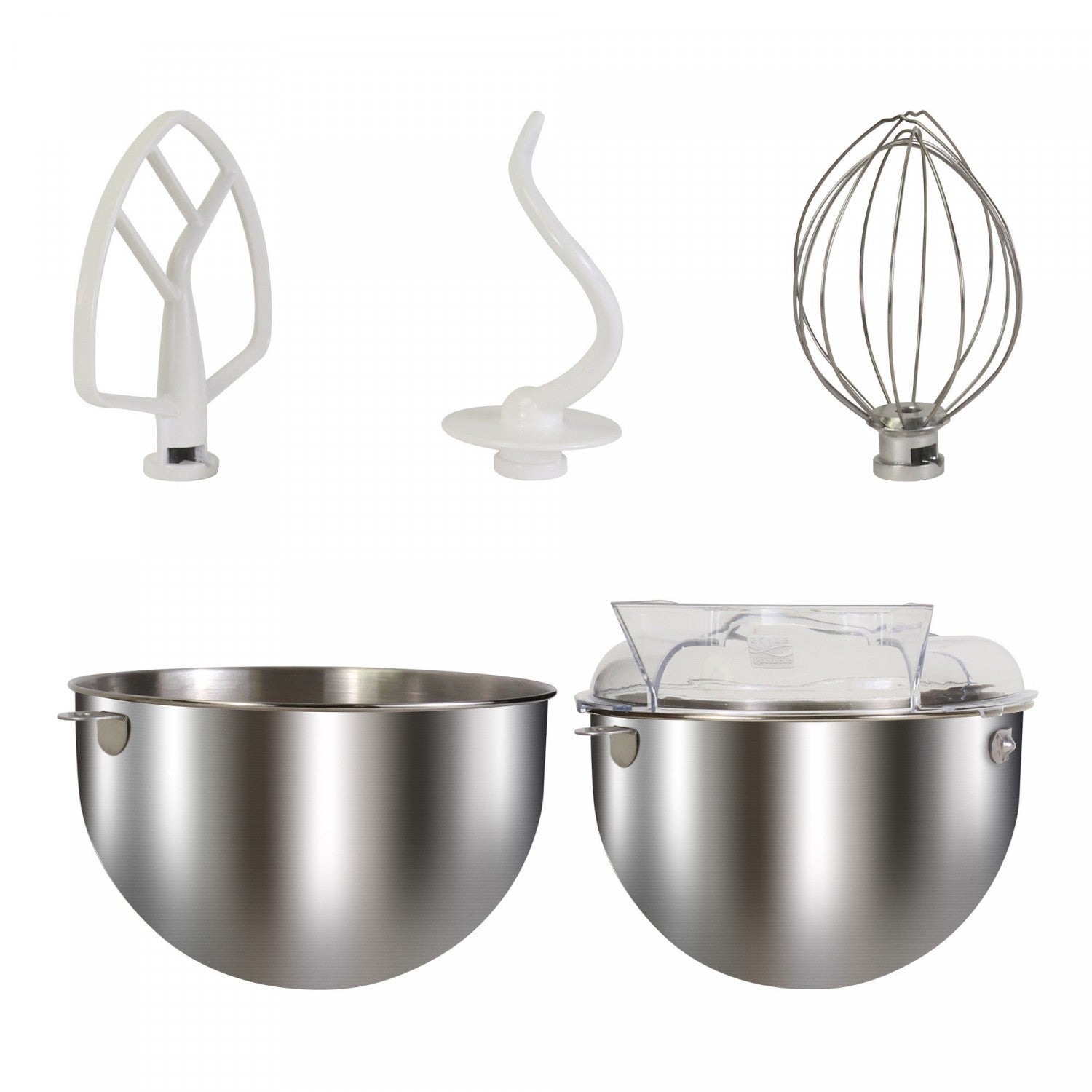 | This Product Includes | Mixer power base; 2 x stainless steel bowls (5 qt and 6 qt); splash guard; 3 x beater attachments (flat beater; dough hook; whisk) |
