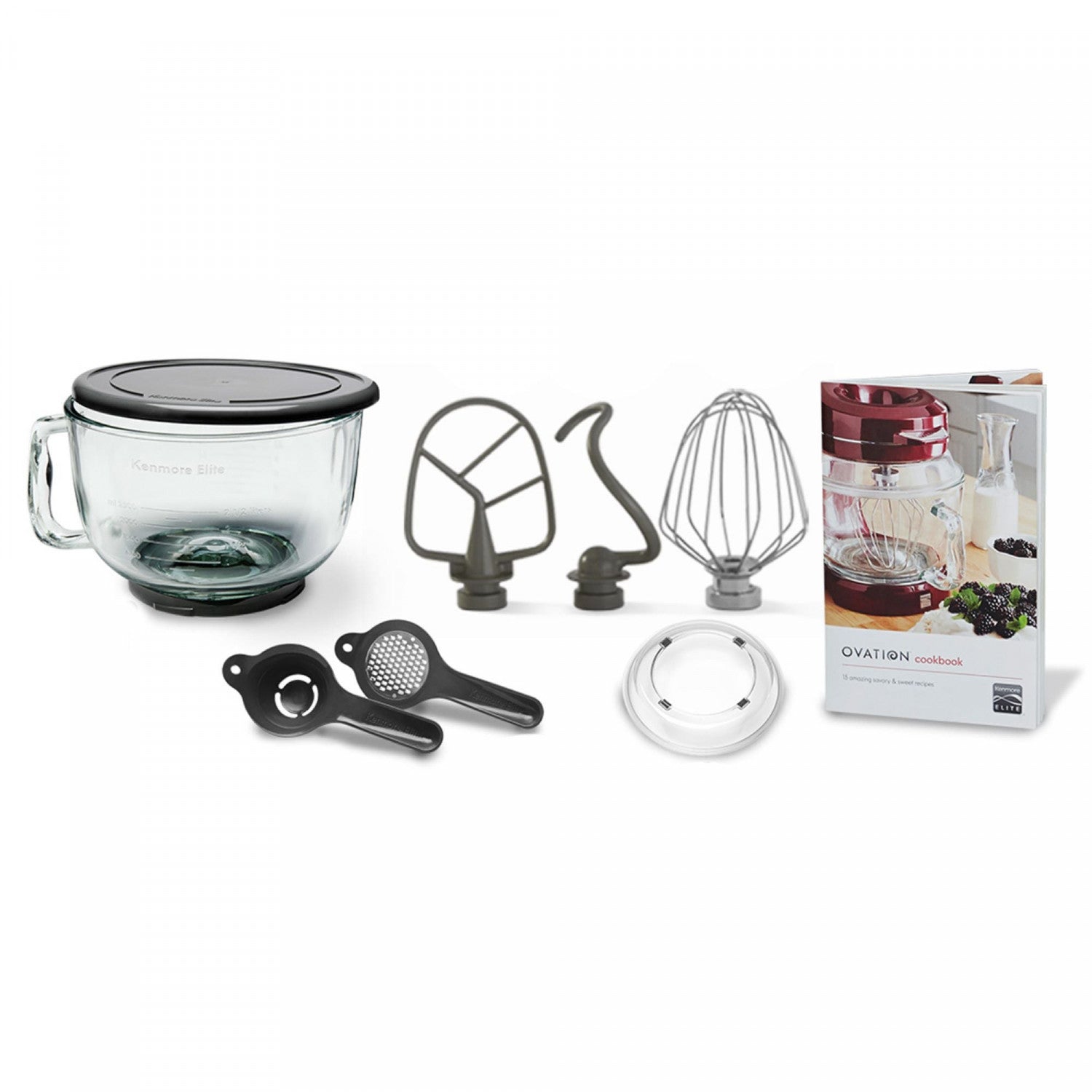 A game-changer for home bakers, the Kenmore Elite Ovation's revolutionary design, premium craftsmanship, and exclusive accessories offer all the power and versatility you expect in a premium stand mixer - and more! A 500W motor with planetary mixing action and 10 speeds ensures consistent and thorough mixing for professional results every time. Add ingredients without the mess with the innovative Pour-In Top, 360 degree splash guard, LED bowl light, and slow-start option and embrace your culinary creativity with a built-in power hub and widely available attachments like pasta rollers and meat grinders. The 5 qt glass bowl can handle large or small tasks and includes a lid for easy storage while dishwasher-safe interchangeable tools (beater, dough hook, and whisk) let you tackle any job from kneading heavy doughs to whipping the fluffiest egg whites. Best of all, Kenmore Elite products are backed by a 5 year limited warranty.
