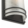 This outdoor wall sconce, part of the keswick collection, radiates understated sophistication with its sleek black frame and gracefully arched silhouette. The “white swirl glassware” creates a mesmerizing, cloud-like texture, softly diffusing the light to cast a warm and inviting glow. Perfect for enhancing your outdoor spaces, it blends contemporary design with a touch of artistic sophistication.