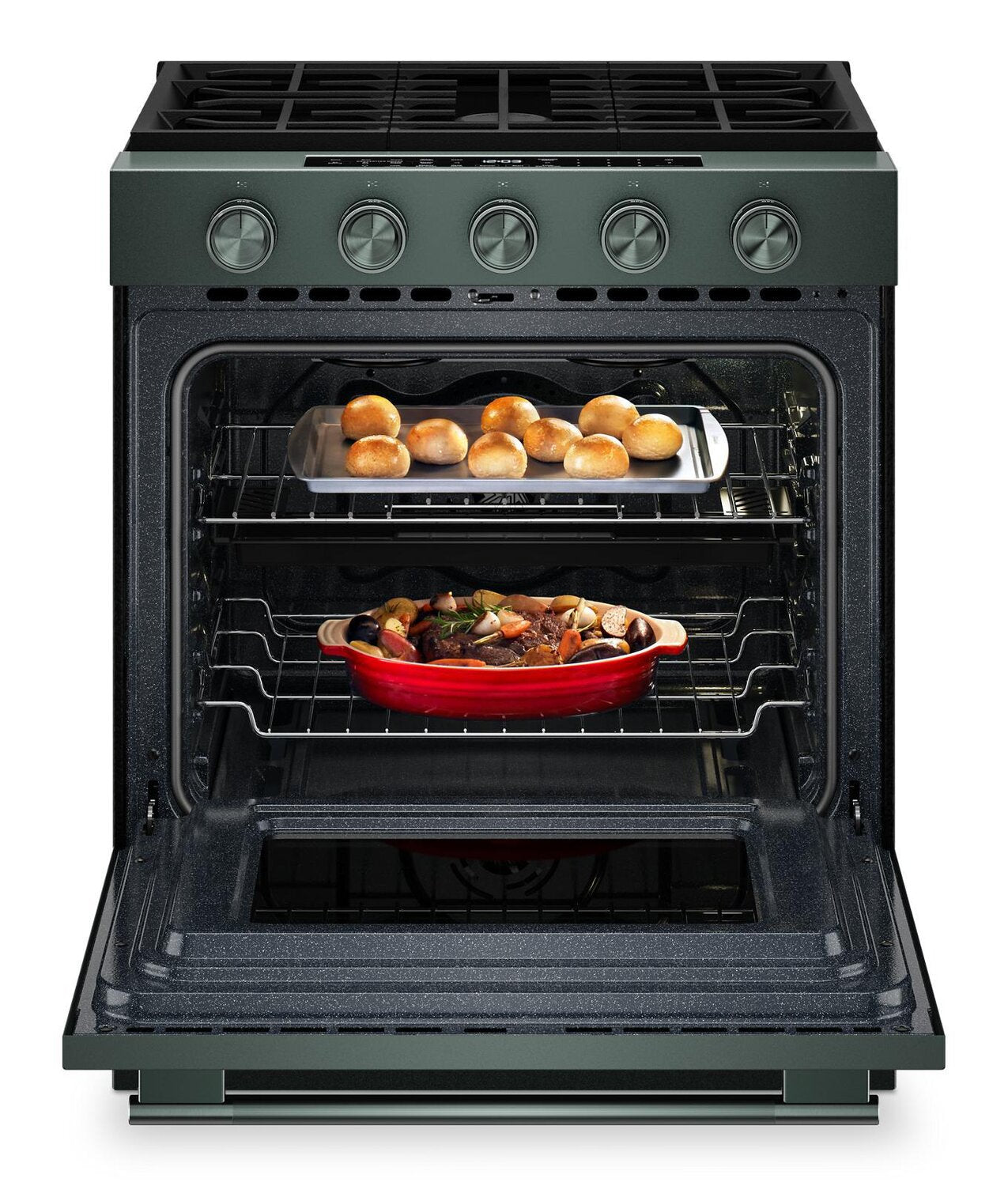 Most Powerful KitchenAid 30" Gas Range Available: The Industry’s Largest and Most Powerful 2-in-1 Burner: Convection Cooking Modes: Steam Bake Mode with Steam Bake Tray: Smart Appliance: Designed to Be Personalized: |