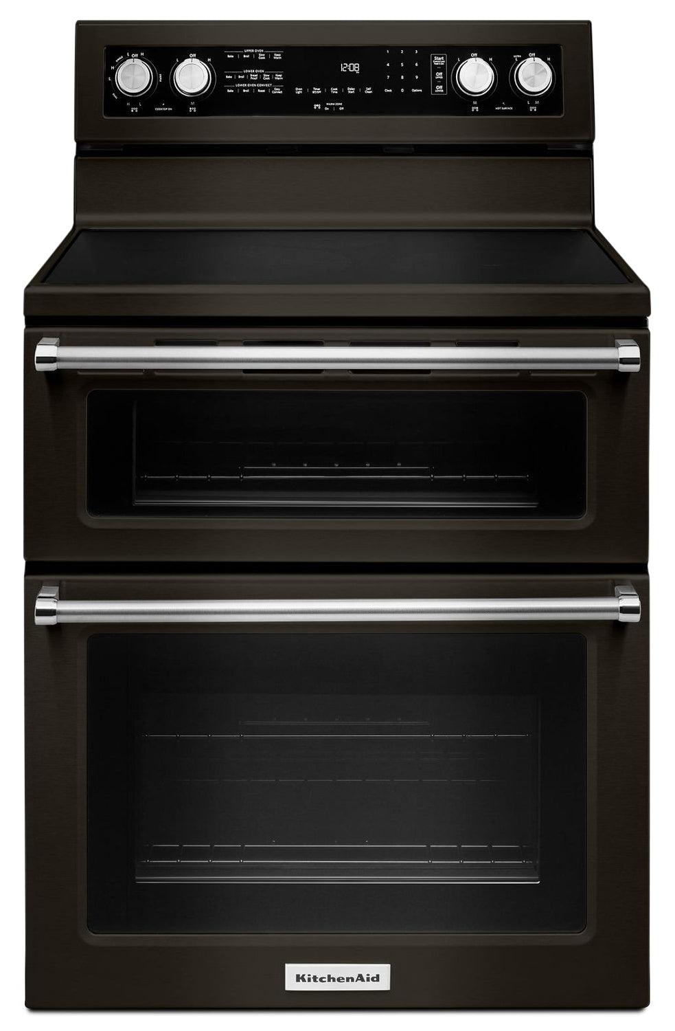 Double up your baking capacity and make the most of your kitchen space with this KitchenAid double oven electric convection range. The Even-Heat™ true convection system ensures heat consistency throughout the interior of the oven for predictable and even results with each use. Atop the range are five cooking elements for even more preparation options, including a dedicated warming zone to keep dishes at the perfect dining temperature until you're ready to eat. And with a sleek, black stainless steel finish, this handsome range is as much a pleasure to the eyes as it is to hungry diners.
