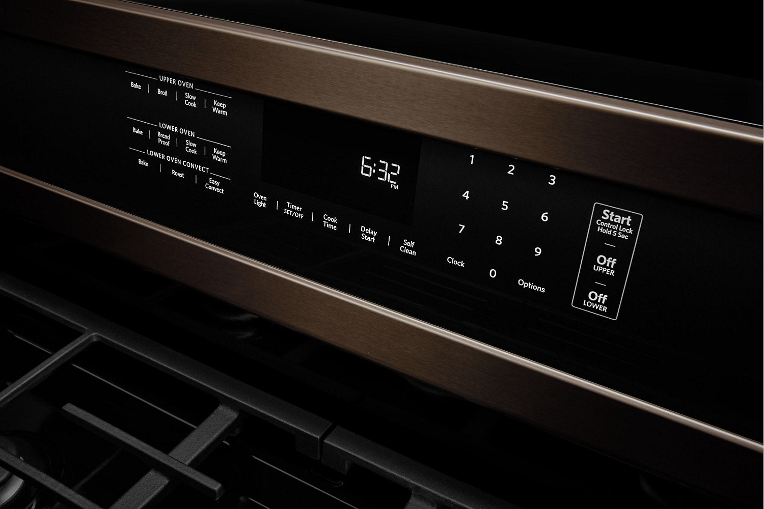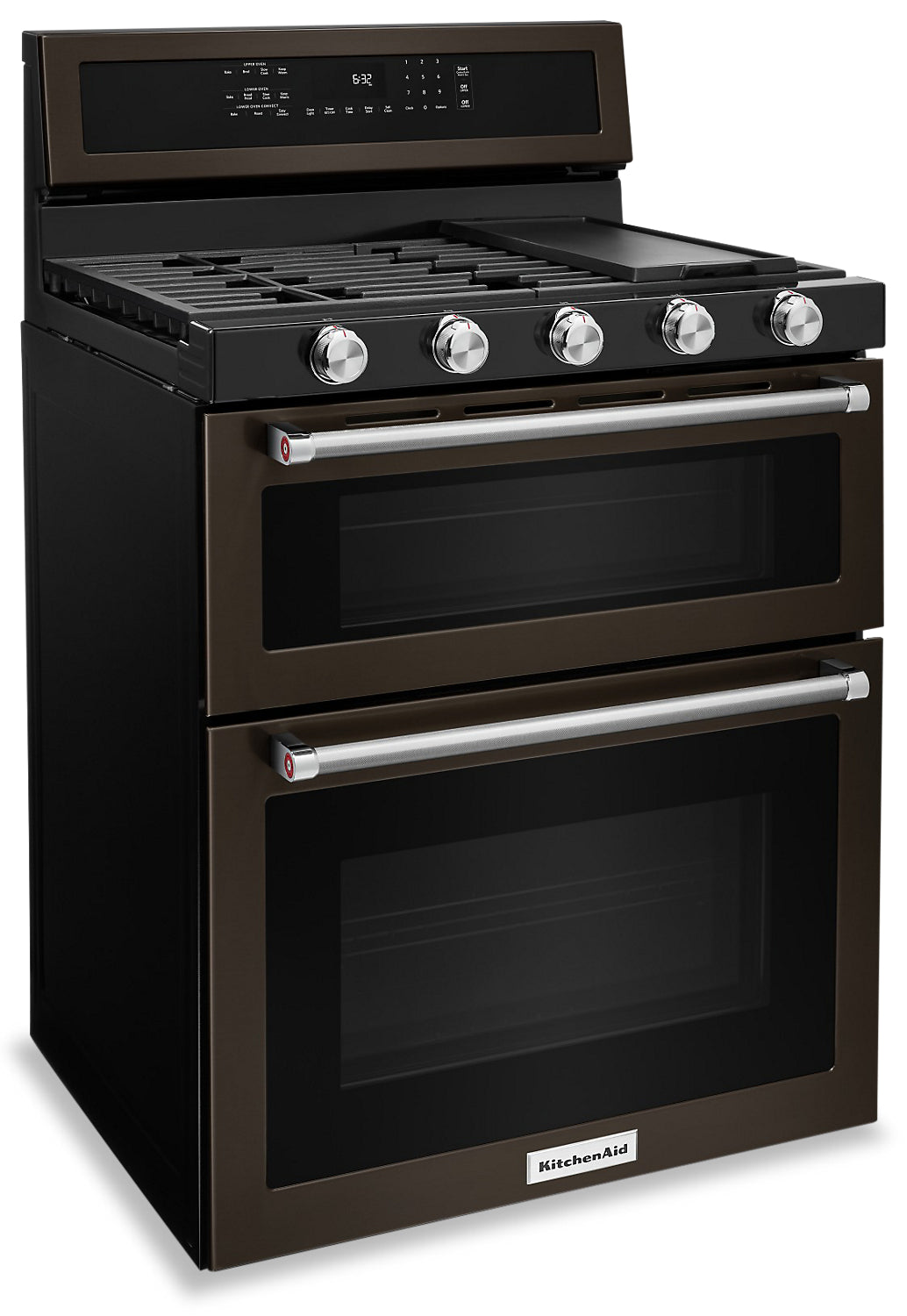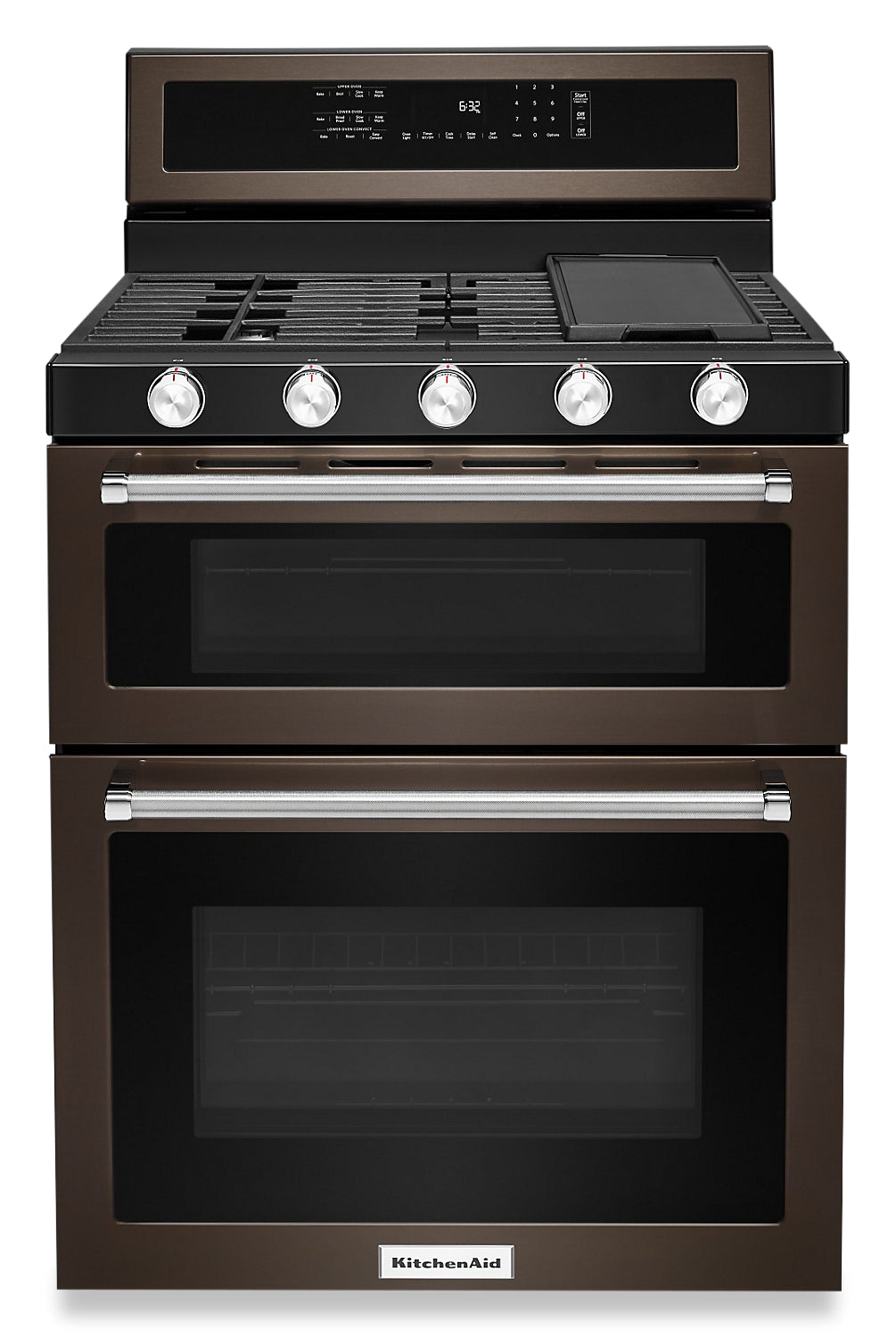 Combine a bold blend of professionally inspired styling with sleek touches for the home when you bring home the KitchenAid 30-inch double-oven gas range. Even-Heat™ true convection and conversion system make certain your chef skills won’t go unnoticed by ensuring the oven stays at a consistent temperature. With six cubic feet of capacity inside and five burners on top, you’ll have plenty of room to cook food for the entire family.