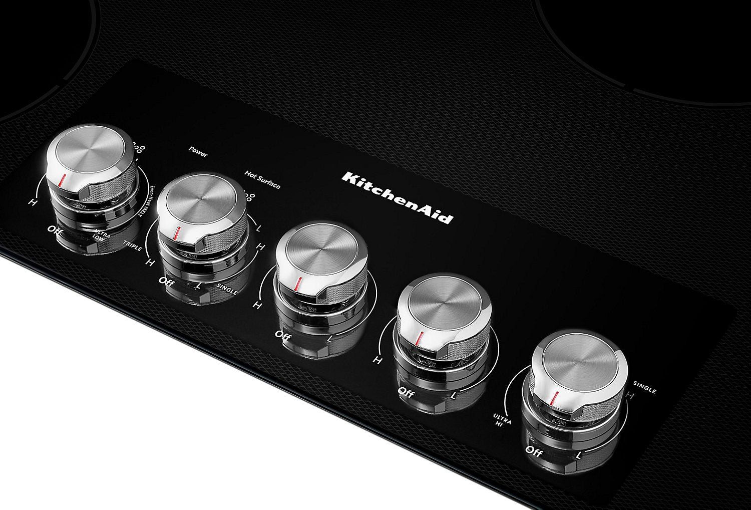 Combine powerful cooking options with sleek style when you get this KitchenAid 36-inch electric cooktop. A fifth triple-ring round element maximizes your flexibility with three distinct ring-sizes to match the size of whatever cookware you’re using. The 10-inch Ultra Power™ element maintains a constant supply of power for a range of settings, so dinner can be done right every night. Clean up is easy with the ceramic glass smooth top, plus always stay safe with the LED hot surface indictor light to warn you when the stove is still too hot to touch.