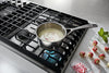 Get all the cooking power you can handle with this 36-inch five-burner gas cooktop from KitchenAid. The downdraft ventilation system is built-in to conveniently remove smoke and odours, keeping your kitchen air clean with three fan speeds and a 300 CFM exhaust rating. Light all five burners with an electric spark instead of a pilot light, and for a more consistent performance, burners are re-lit if the flame is accidentally blown out. Add a touch of finesse to your kitchen with stainless steel knobs and full-width cast-iron grates.