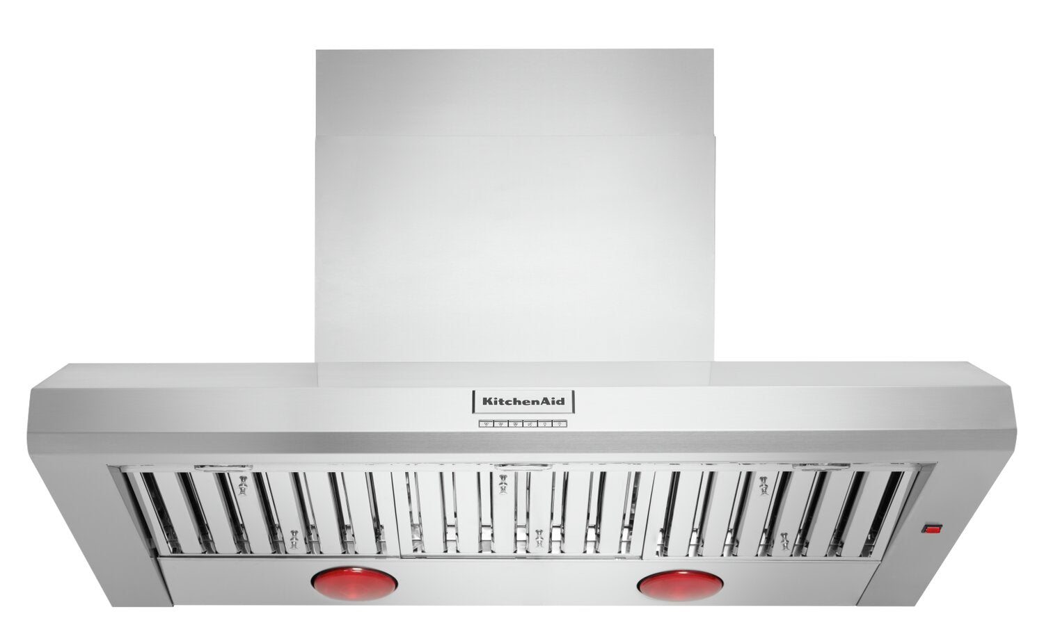 Four-Speed Fan: Power Boost Function: Requires 585 or 1170 CFM Motor Class - Sold Separately: Automatic Turn On: Two Food Warming Lamps: Three LED Lights with Night Light Setting: Removable Stainless Steel Baffle Filters: KitchenAid Commercial-Style Ventilation: 105,000 BTU Rating: |