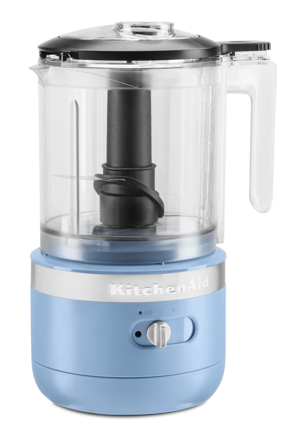 Go where ambition takes you with the cordless food chopper from KitchenAid. Designed with a powerful rechargeable lithium-ion battery, this new cordless food chopper delivers optimal runtime and performance so you can cook wherever, whatever or however you choose. Ideal for everyday use, this chopper can mix, dice or puree all your favourite ingredients for creatively fresh and healthy meals. Don’t let a cord hold you back from chopping up to 40 medium-sized onions with one full battery charge. The large five-cup BPA-free work bowl makes meal prep a breeze, while the compact design makes it easy to tuck away.