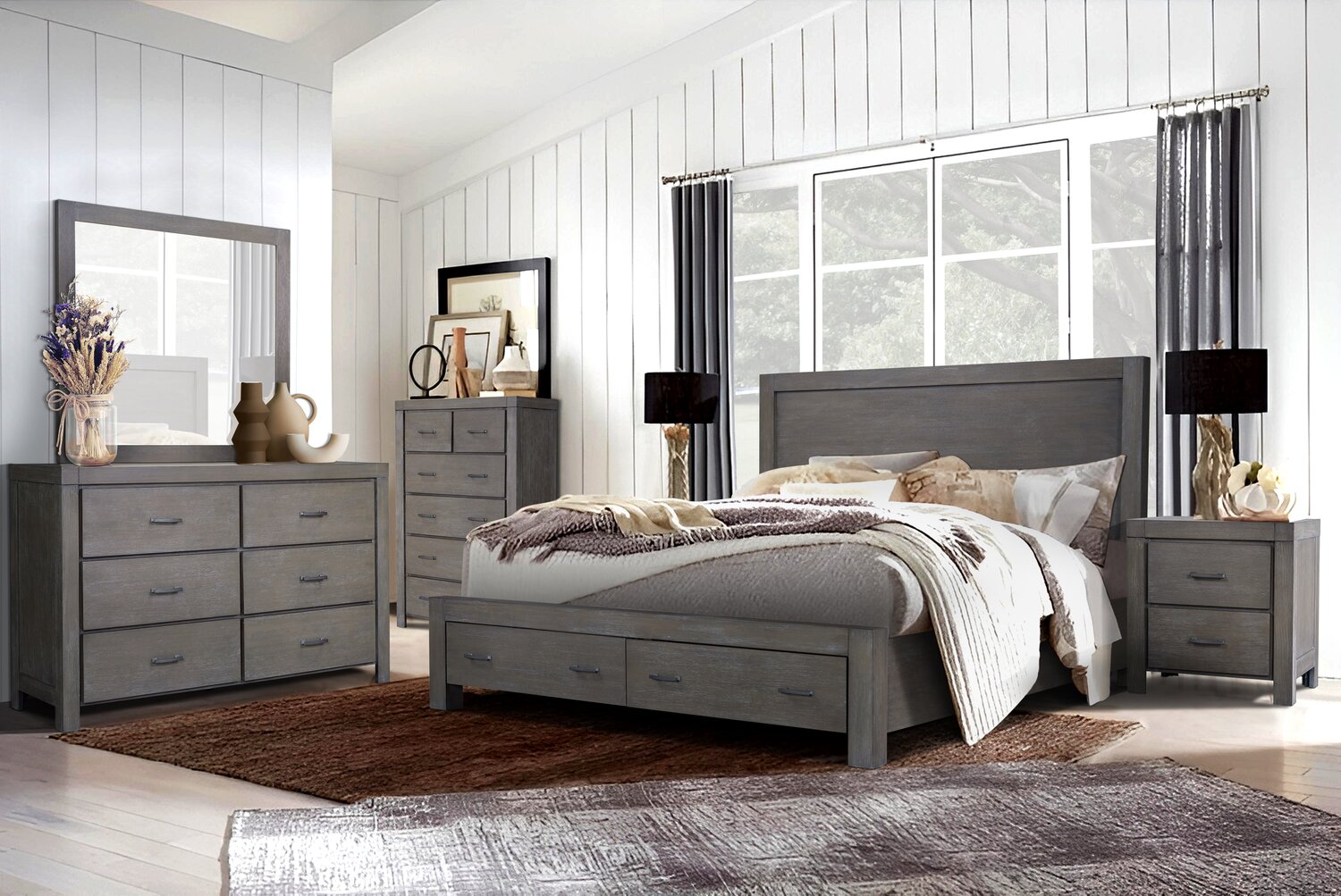 Koda Platform Storage Bed with Headboard & Frame, Wooden, Grey - King Size
