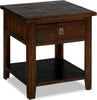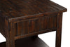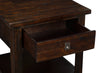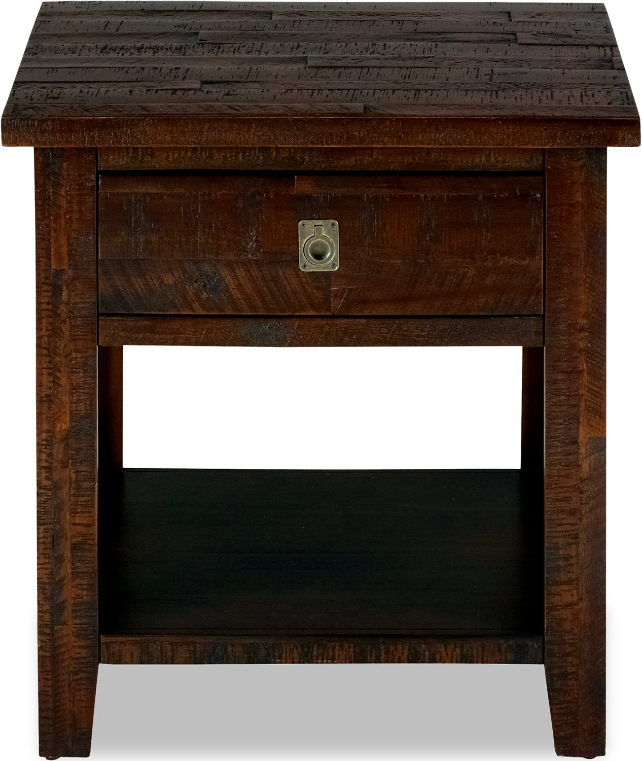 Bring home the style of the tropical Polynesian mountains with this Kona Grove end table. Cased in solid acacia wood and finished in a hand-hewn look, this piece is full of rustic island charm. The recessed ring drawer handle offers an eye-catching accent that balances nicely with the deep and dark wood finish. Finally, two storage spaces – a drawer and an open bottom shelf – provide plenty of options for keeping this corner of the room organized and tidy.