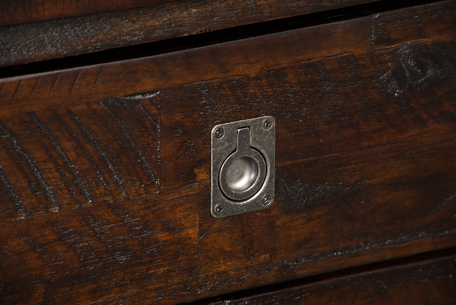 The intentionally, hand-distressed finish highlights the beauty of the natural acacia wood while also infusing this piece with rustic style.