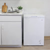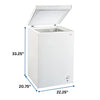 Convenient and affordable compact chest freezer: This compact 3.5 cubic foot (99 liter) chest freezer provides convenient storage for your frozen goods so you can reduce food waste and save money, even in small apartments, cottages, or condos. The classic white freezer features a space-saving flat back design and swing-top lid that let it fit easily into any corner of your cottage, apartment, home, or condo. A removable wire storage basket helps organize your frozen goods for maximum efficiency and accessibility and keeps smaller and commonly used items close at hand. Reliable compressor cooling technology keeps contents at your desired temperature with a range of 0 to -24°C (32 to -11.2°F). A simple external control dial lets you adjust the temperature without opening the door and letting the cold air out and the front-access drain allows for hassle-free draining when defrosting or cleaning the freezer.