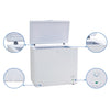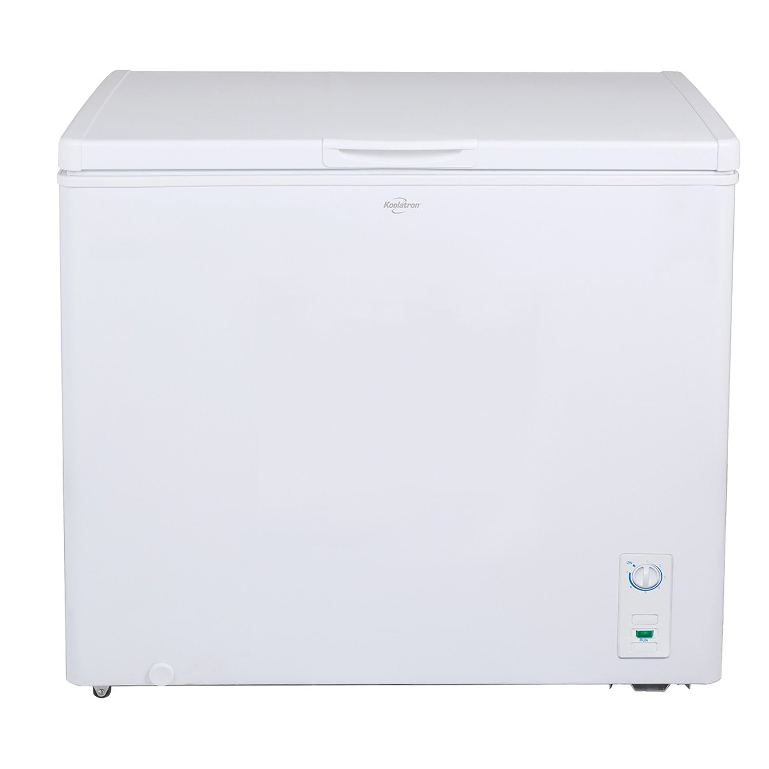 Reduce food waste and save money with this spacious chest freezer: This generously-sized 7.0 cubic foot (195 liter) chest freezer provides convenient storage for your frozen goods so you can buy in bulk, reduce food waste and save money. The classic white freezer features a space-saving flat back design and swing-top lid that let it fit easily into your basement or storage room. A removable wire storage basket helps organize your frozen goods for maximum efficiency and accessibility and keeps smaller and commonly used items close at hand. Reliable compressor cooling technology keeps contents at your desired temperature with a range of 0 to -24°C (32 to -11.2°F). A simple external control dial lets you adjust the temperature without opening the door and letting the cold air out and the front access leak-proof drain allows for hassle-free draining when defrosting or cleaning the freezer.