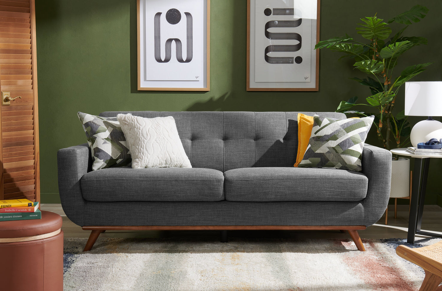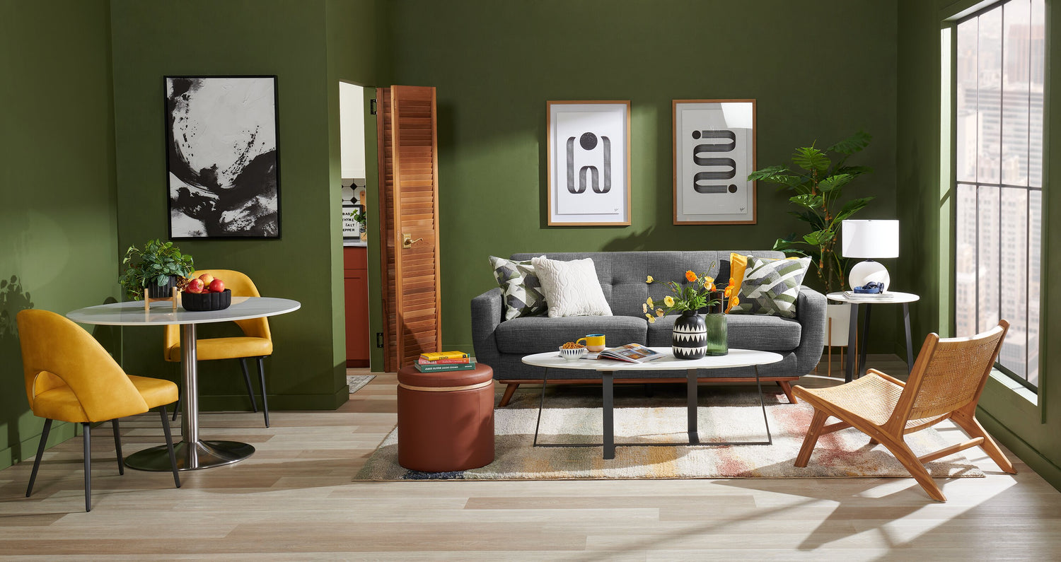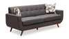 | Accent Details | The tufted back cushion and rounded base of the seat are chic and present a unique appearance. Plus, the tapered wooden legs beautifully complement the upholstery. |
