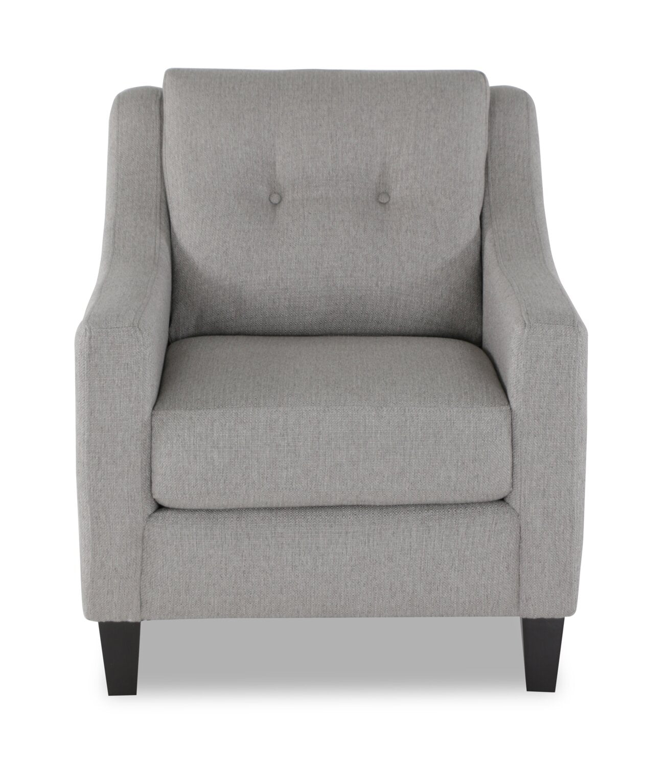 Give your living space a fashionable update with this grey-coloured Kylie chair. Part of the exclusive Cindy Crawford Home collection, this piece is enveloped in linen-look fabric for an elegant feel. Swooping armrests and plump cushions are outlined in matching fabric piping for a contemporary profile to suit your home's decor. A button-tufted back cushion highlights the fibre-topped high-density foam stuffed inside. This chair is the place to enjoy your family's time together.