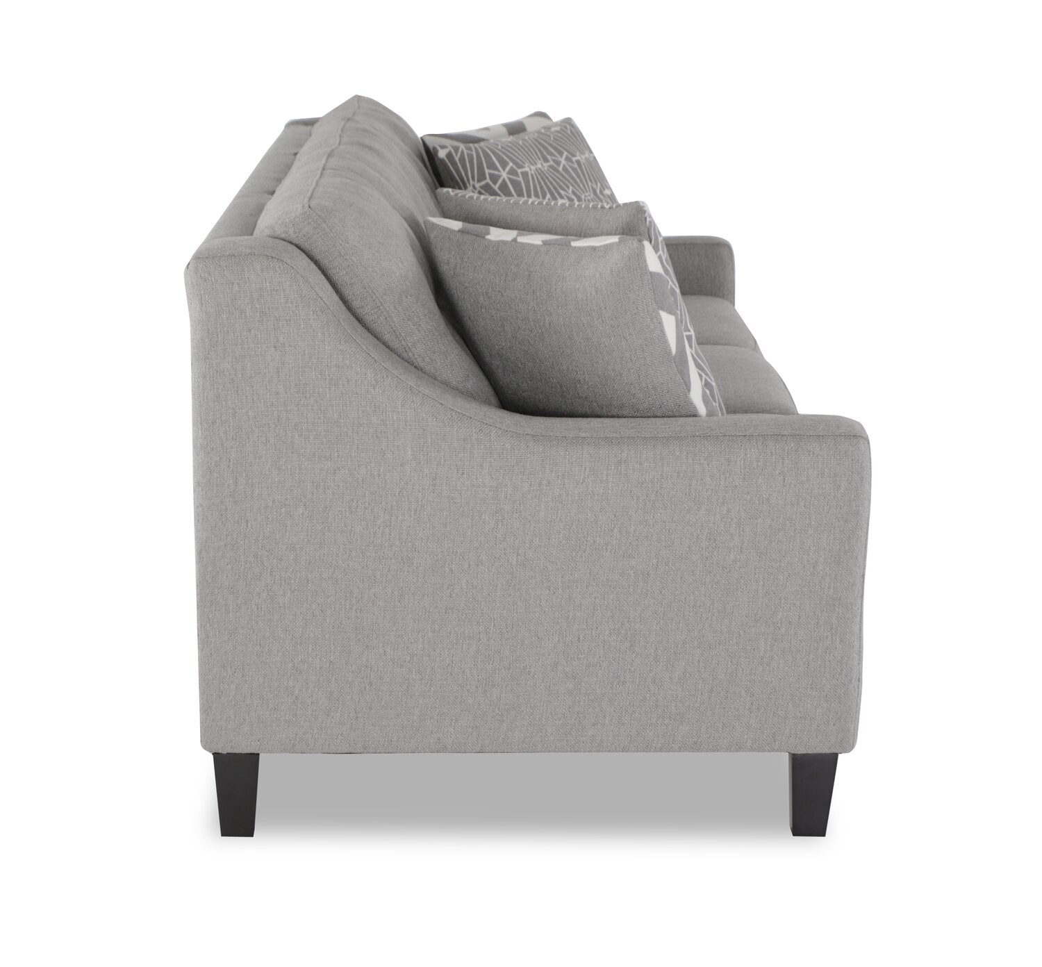 Give your living space a fashionable update with this grey-coloured Kylie sofa. Part of the exclusive Cindy Crawford Home collection, this piece is enveloped in linen-look fabric for an elegant feel. Swooping armrests and plump cushions are outlined in matching fabric piping for a contemporary profile to suit your home's decor. Button-tufted back cushions highlight the fibre-topped high-density foam stuffed inside. With four accent pillows to provide comfort and variety, this sofa is the place to enjoy your family's time together.