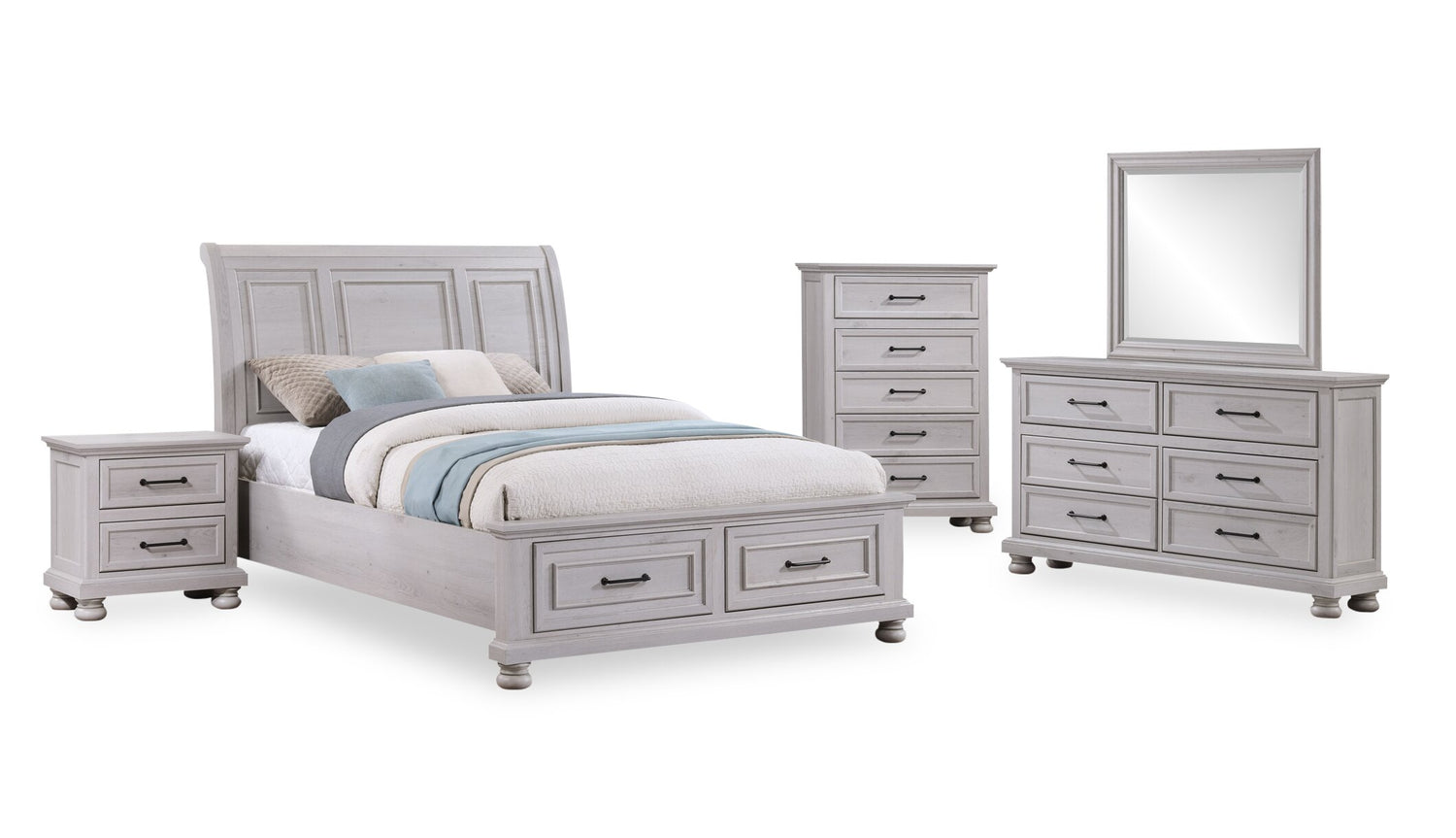 | Storage Options | Extra clothes, blankets and pillows can be tucked away in the two spacious footboard storage drawers. |
