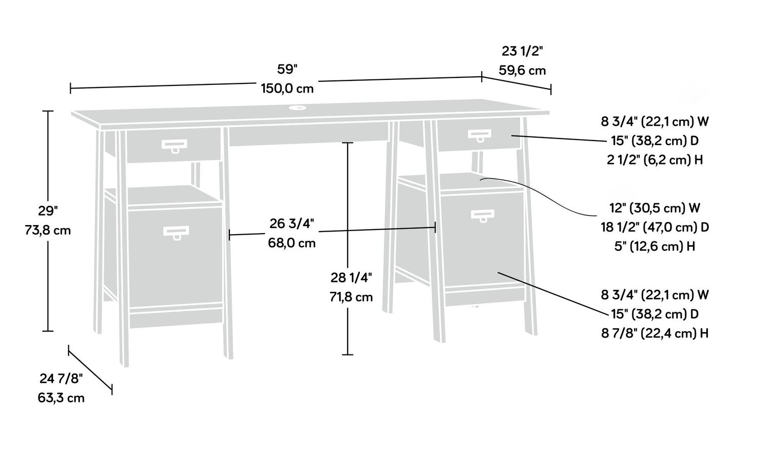 Width: 59.06" (150.0 cm) Height: 29.06" (73.8 cm) Depth: 24.92" (63.3 cm)