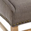 Elevate your dining experience with the dining chair in brown grey. Crafted with sloped arms, plush fabric upholstery, and elegant nailhead accents, this chair brings a modern yet timeless appeal to any dining area. The sturdy kd (knock-down) construction ensures easy assembly while maintaining long-lasting stability. Its contemporary silhouette pairs beautifully with both classic and modern tables, making it a versatile addition to your home.