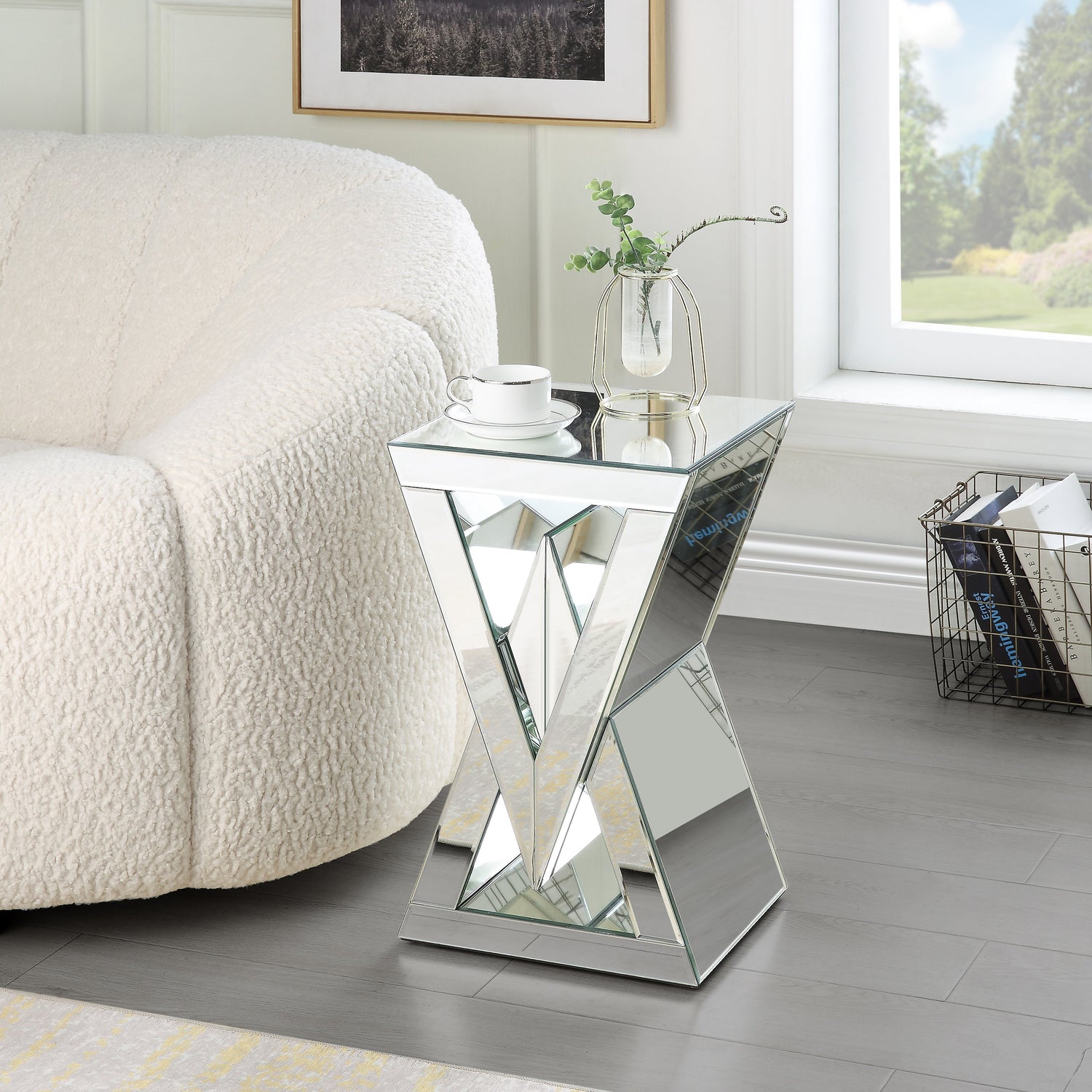 | Accent Details | If its glass tabletop and silver frame didn’t already lend enough glamour, the glass in the table’s centre is shaped to make this piece look like one big diamond. |