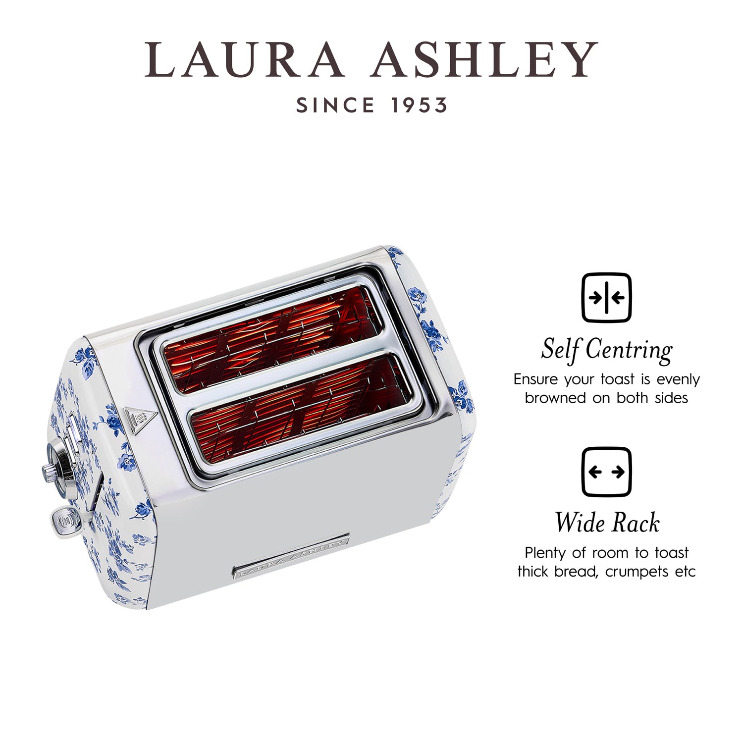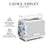 If you're looking for a multi-functional toaster that not only makes the perfect toast but can cook tasty bagels, luscious crumpets, and wholesome thick-sliced bread then look no further! The Laura Ashley 2-Slice Toaster is the perfect match to make your breakfast and style your kitchen at the same time. Each toaster is hand decorated and finished with a high-grade gloss UV coating to ensure it looks pristine day in day out. This 2-Slice toaster has all the features needed to create the perfect breakfast for your friends and family. The seven-setting variable heat control gives you precise toasting. A high-lift lever making it safe and easy to remove your warm toasties without burning your fingers. Made with high-grade durable stainless-steel, it is built to last and easy to keep clean in the kitchen. An auto-centering feature to evenly toast on all sides, no matter how thick or thin. You can even warm up croissants on the warming rack included for that delicious continental style breakfast.