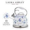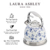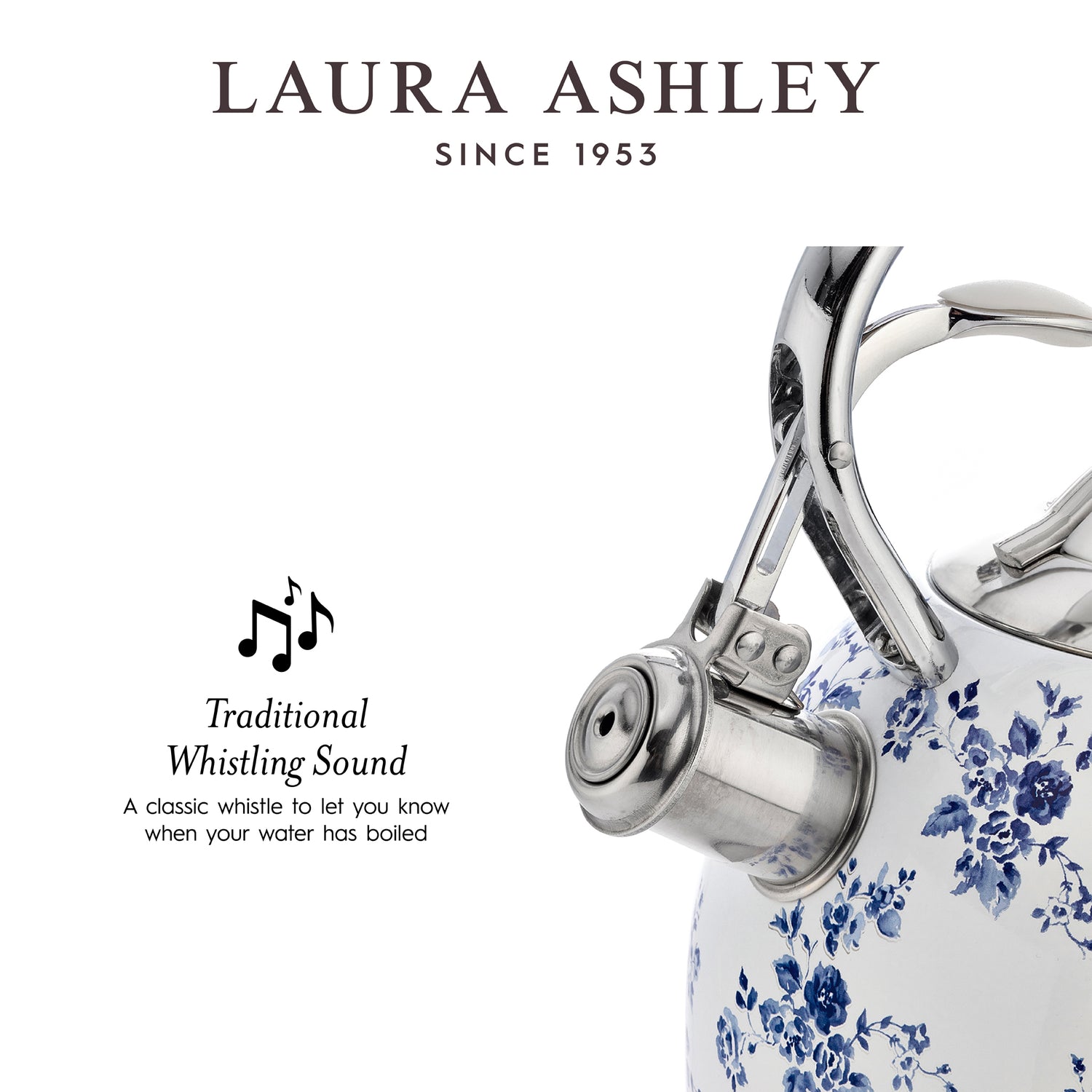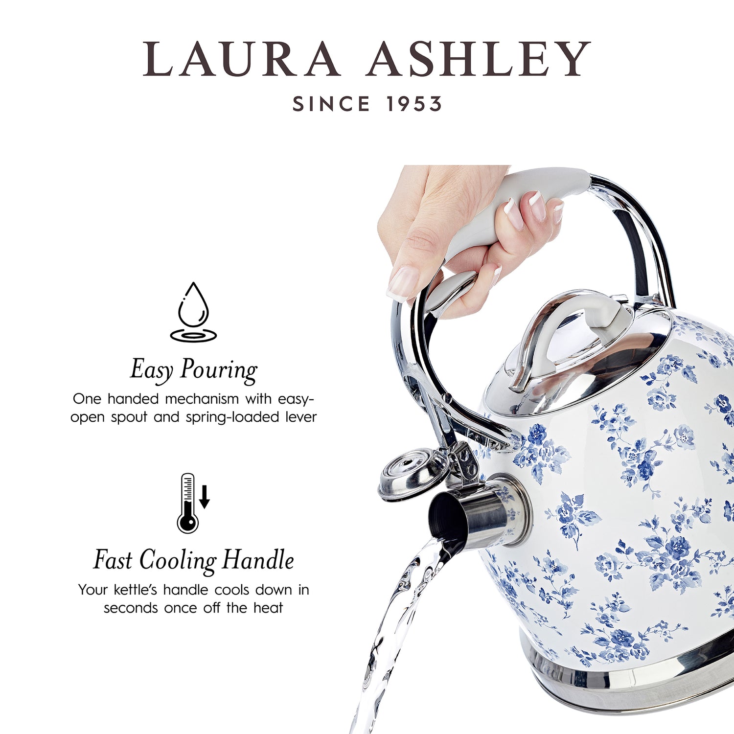 The Laura Ashley Stove Top Kettle gives you the simple pleasures of a cup of tea or coffee in the comfort of your own home. Enjoy the convenience of boiling up to 10 cups of hot water quickly and safely with a durable stainless-steel construction, ergonomic design, and safety features. The multi-stove compatibility ensures you can use it with any stovetop and the food-grade safe stainless steel keeps your water fresh and clean. The easy-open spout and spring-loaded lever make pouring a breeze. Enjoy a perfect traditional whistling sound that reminds you when your water is boiled, and the fast cooling handle will cool down in seconds once off the heat. Experience the beauty of a timeless classic with this stunning designer stovetop kettle.