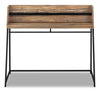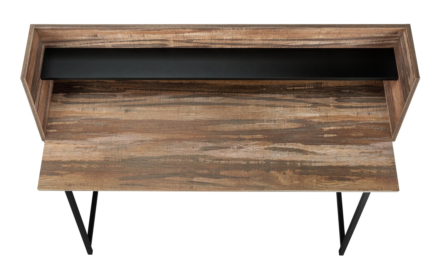 Look at your office from a different angle with this Lawson desk. Finished in a smooth laminate, the compact desktop has side panels that slant to seamlessly align with the attractive trapezoid-shaped metal legs for a clean look. The storage hutch includes one long shelf in a contrasting black finish that’s the ideal size to hold small items like wireless speakers or a pencil holder. Supporting the desktop is a sturdy black metal base. This contemporary desk with a space-saving design is a great choice to make any room your new workspace.