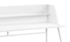 Look at your office from a different angle with this Lawson desk. Finished in a smooth laminate, the compact desktop has side panels that slant to seamlessly align with the attractive trapezoid-shaped metal legs for a clean look. The storage hutch includes one long shelf in a white finish that’s the ideal size to hold small items like wireless speakers or a pencil holder. Supporting the desktop is a sturdy white metal base. This contemporary desk with a space-saving design is a great choice to make any room your new workspace.