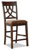 Few dining chairs inspire as much fascination as the Leahlyn 24-inch bar stool. From the curling lip atop the chair frame, to the double-swoop backrest, even all the way down to the square feet milled into the front legs, this piece is rich with details most other dining seats neglect. Equally as enchanting is the Old-World seat fabric. Earth tones and clay colours help to bring out the redness from the cherry veneers for a welcome warmth sometimes lacking in modernist furniture.