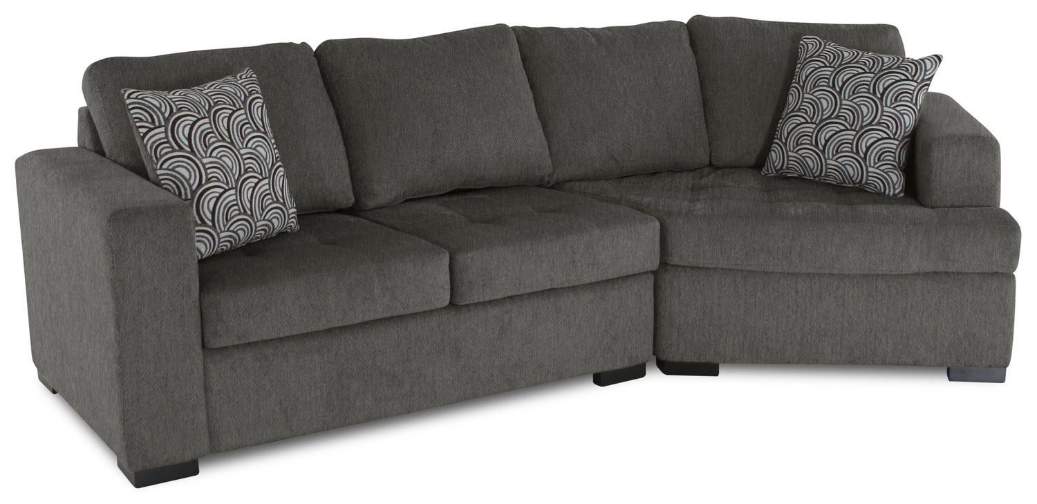 In a busy life, multipurpose furniture can make everyday occurrences so much easier. Whether hosting guests or a family movie night, this spacious Legend two-piece sectional can do it all in style. With a calm, contemporary design and a rich pewter colour, this sofa will add a sense of comfort to your home. Chenille fabric is soft, and the extra padding provides comfort and support. Plus, the cuddler component adds a unique flair while allowing you to curl up with a loved one. Get cozy and let comfort wash over you and your family with the Legend cuddler sectional.