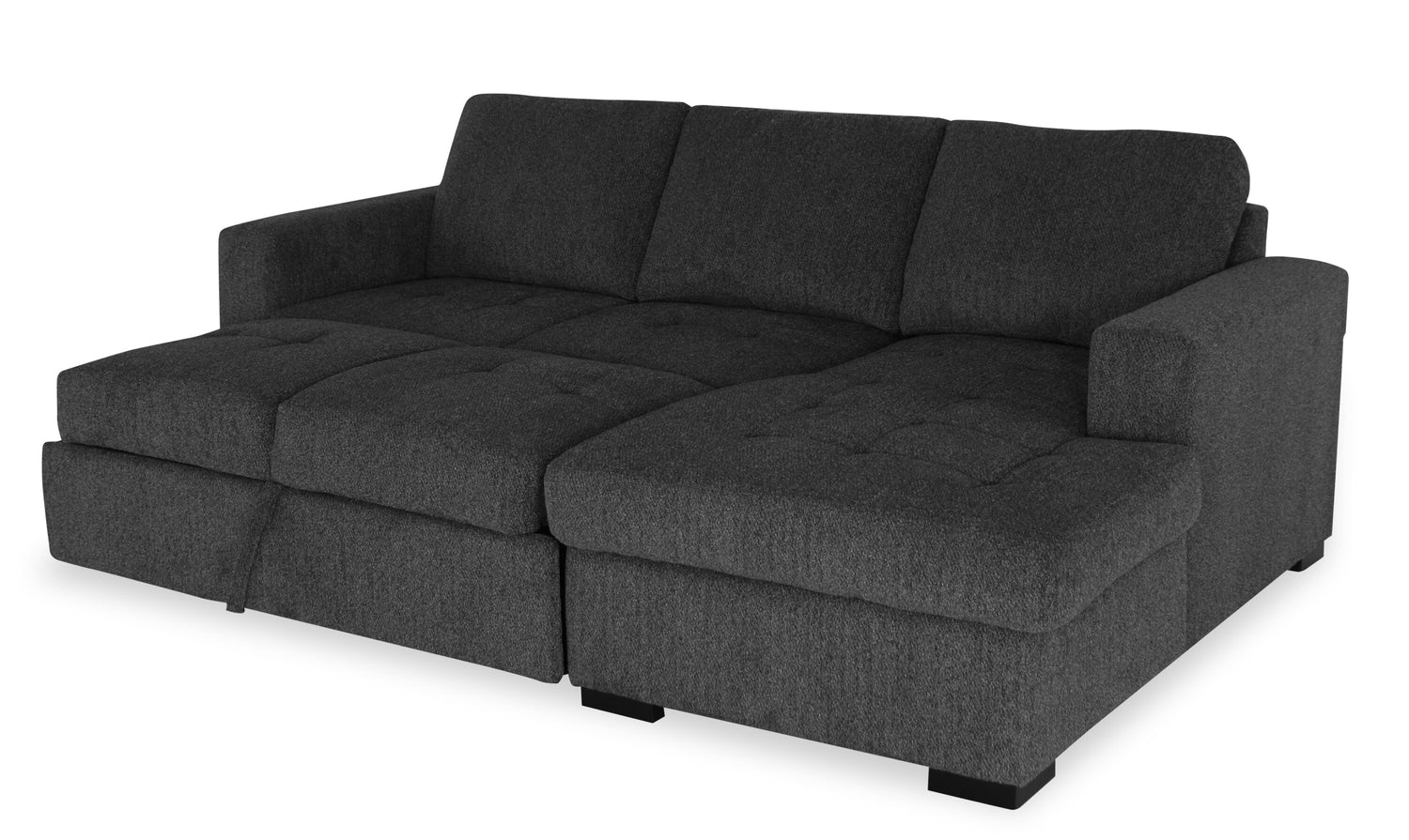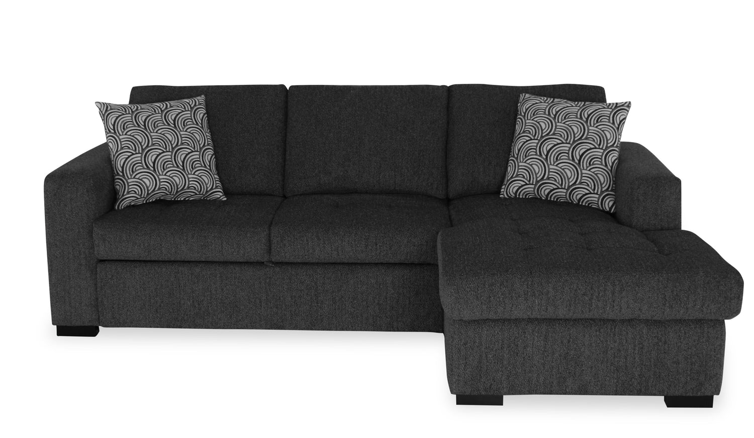 In a busy life, multipurpose furniture can make everyday occurrences so much easier. Whether for hiding clutter, having overnight guests or hosting a family movie night, this spacious Legend two-piece sectional can do it all in style. With a calm, contemporary design and a rich pepper colour, this sofa will add a sense of comfort to your home. If a last-minute visitor needs to stay the night or an important guest is about to come by, you'll be prepared. Hide your disarray in the storage chaise, set up the built-in sleeper bed and be ready when you need to.