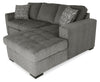 In a busy life, multipurpose furniture can make everyday occurrences so much easier. Whether for hiding clutter, having over night guests or hosting a family movie night, this spacious Legend two-piece sectional can do it all in style. With a calm, contemporary design and a rich pewter colour, the sofa will add a sense of comfort to your home. If a last-minute visitor needs to stay the night or an important guest is about to come by, you'll be prepared. Hide your disarray in the storage chaise, set up the built-in sleeper bed and be ready when you need to.