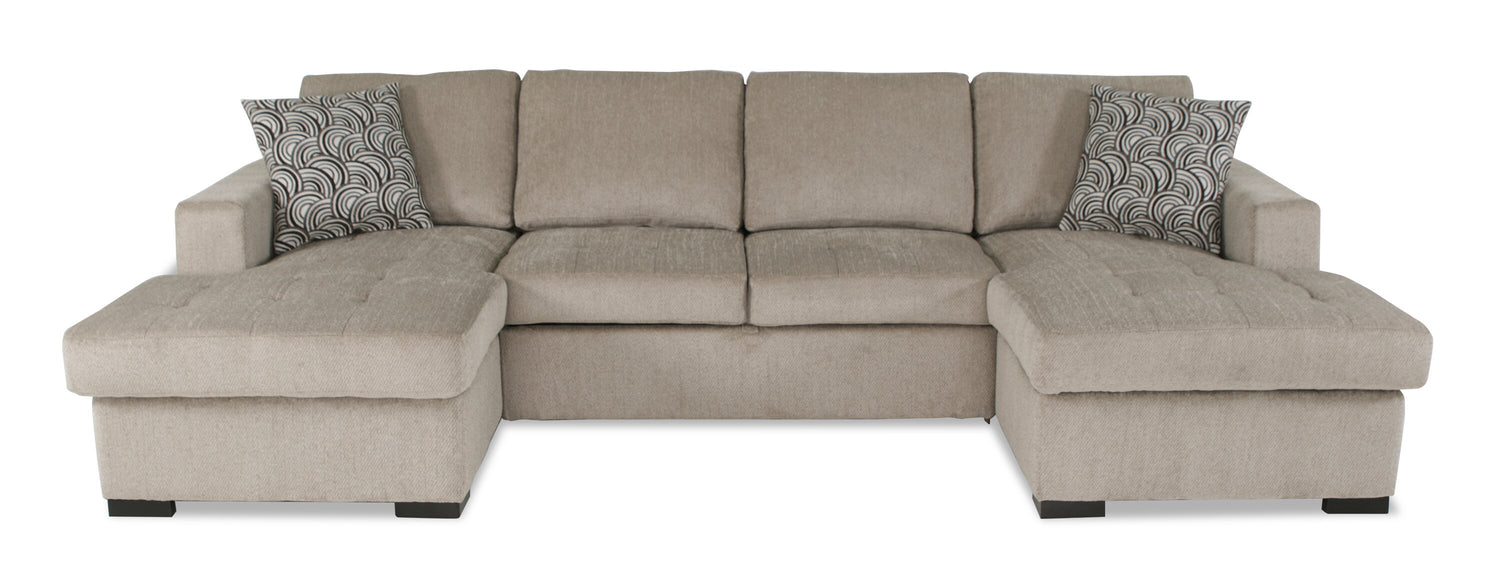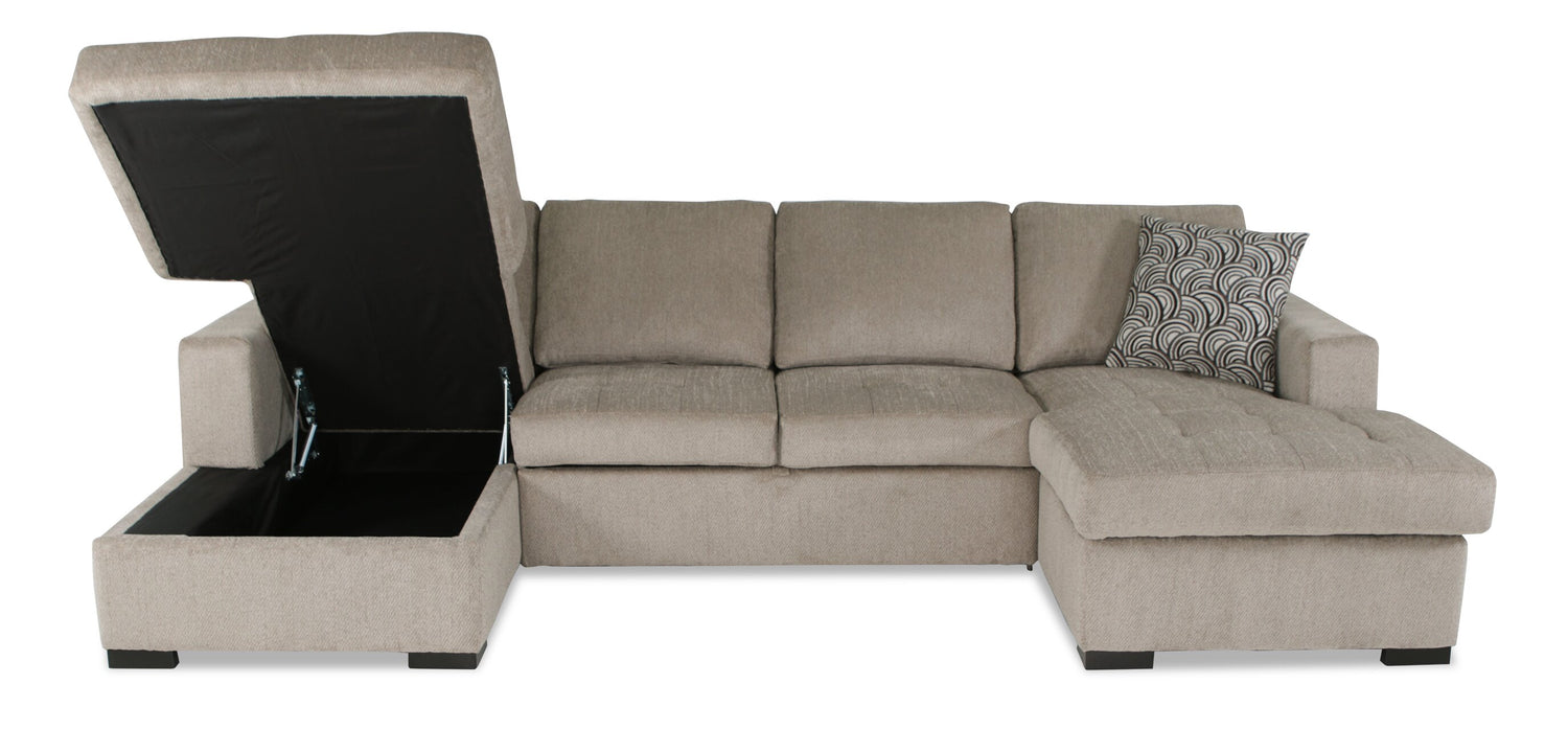 In a busy life, multipurpose furniture can make everyday activities so much easier. Whether you're hiding clutter, having over night guests or hosting a family movie night, this spacious Legend three-piece sectional can do it all in style. With a calm, contemporary design and a rich platinum colour, this sofa will add a sense of comfort to your home. If a last-minute visitor needs to stay the night or an important guest is about to come by, you'll be prepared. Hide your disarray in the storage chaises, set up the built-in sleeper bed and be ready when you need to.