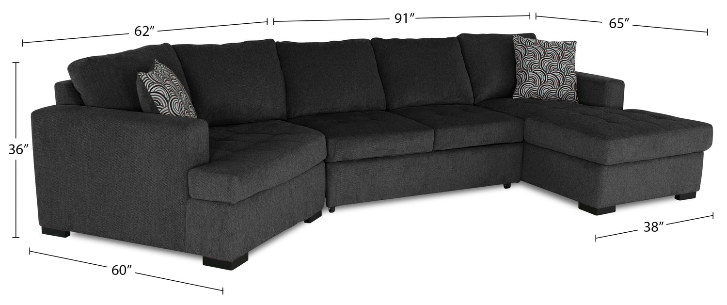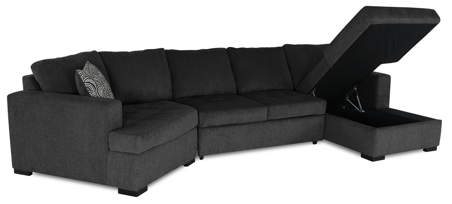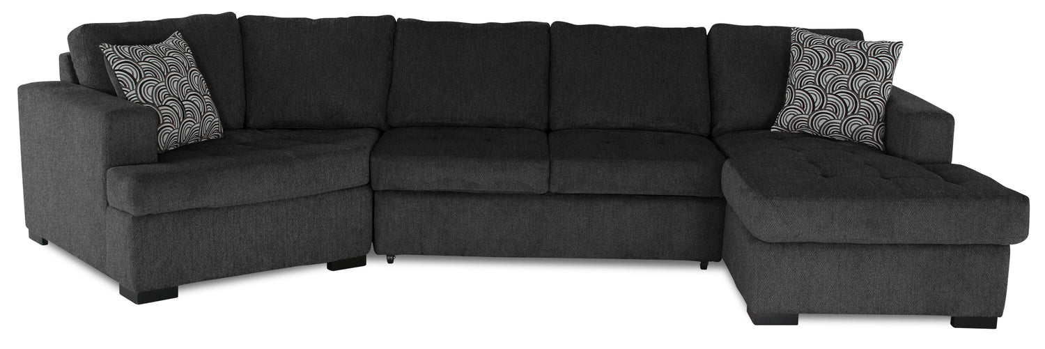 In a busy life, multipurpose furniture can make everyday occurrences so much easier. Whether for hiding clutter or having overnight guests, this spacious Legend three-piece sectional can do it all in style. With a calm, contemporary design and a rich pepper colour, this sectional will add a sense of comfort to your home. Chenille fabric is soft, and the extra padding provides comfort and support. Plus, the cuddler component adds a unique flair while allowing you to curl up with a loved one. Pull out the sleeper, get cozy and let comfort wash over you with the Legend cuddler sectional.