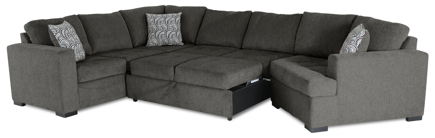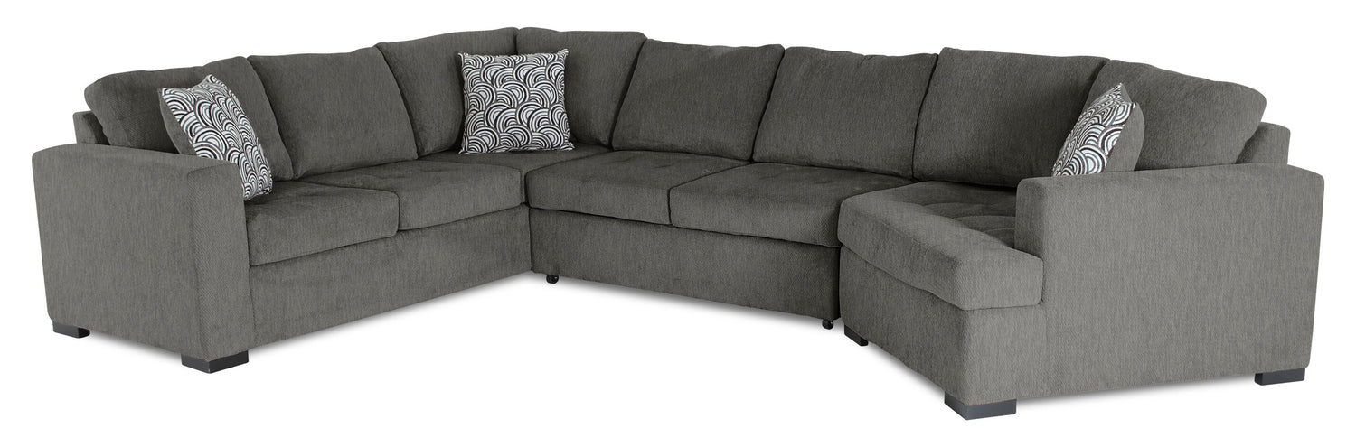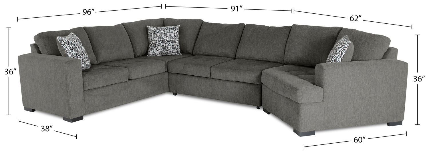 In a busy life, multipurpose furniture can make everyday occurrences so much easier. Whether hosting overnight guests or a family movie night, this spacious Legend three-piece sectional can do it all in style. With a calm, contemporary design and a rich pewter colour, this sofa will add a sense of comfort to your home. Chenille fabric is soft, and the extra padding provides comfort and support. Plus, the cuddler component adds a unique flair while allowing you to curl up with a loved one. Pull out the sleeper, get cozy and let comfort wash over you and your family with the Legend cuddler sectional.