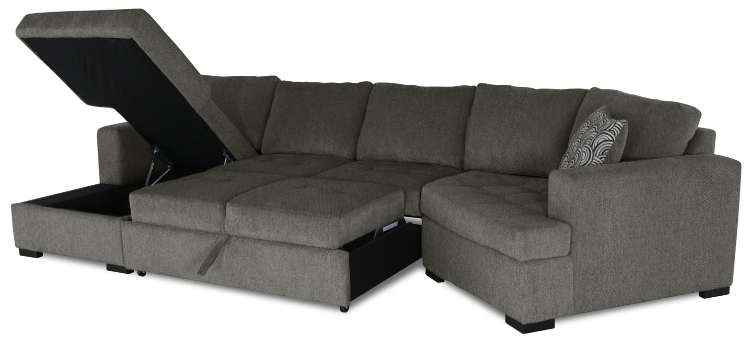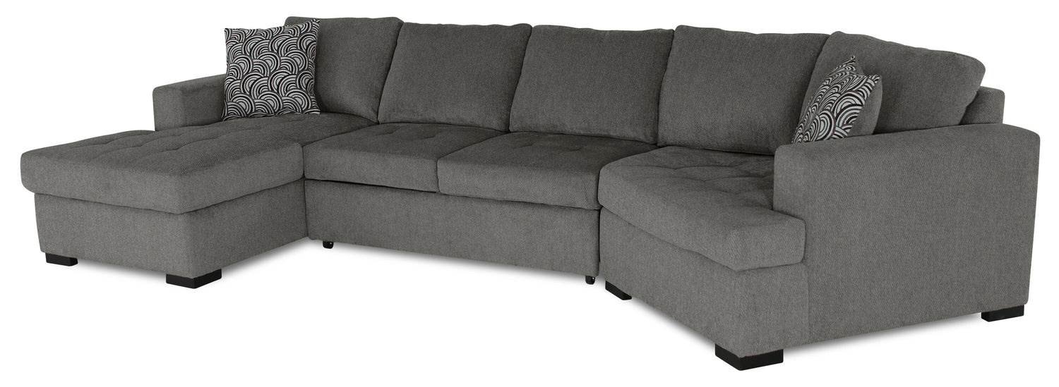 In a busy life, multipurpose furniture can make everyday occurrences so much easier. Whether for hiding clutter or having overnight guests, this spacious Legend three-piece sectional can do it all in style. With a calm, contemporary design and a rich pewter colour, this sectional will add a sense of comfort to your home. Chenille fabric is soft, and the extra padding provides comfort and support. Plus, the cuddler component adds a unique flair while allowing you to curl up with a loved one. Pull out the sleeper, get cozy and let comfort wash over you with the Legend cuddler sectional.