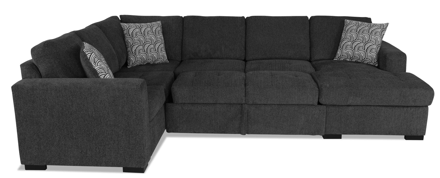 In a busy life, multipurpose furniture can make everyday occurrences so much easier. Whether for hiding clutter, having overnight guests or hosting a family movie night, this spacious Legend three-piece sectional can do it all in style. With a calm, contemporary design and a rich pepper colour, this sofa will add a sense of comfort to your home. If a last-minute visitor needs to stay the night or an important guest is about to come by, you'll be prepared. Hide your disarray in the storage chaise, set up the built-in sleeper bed and be ready when you need to.
