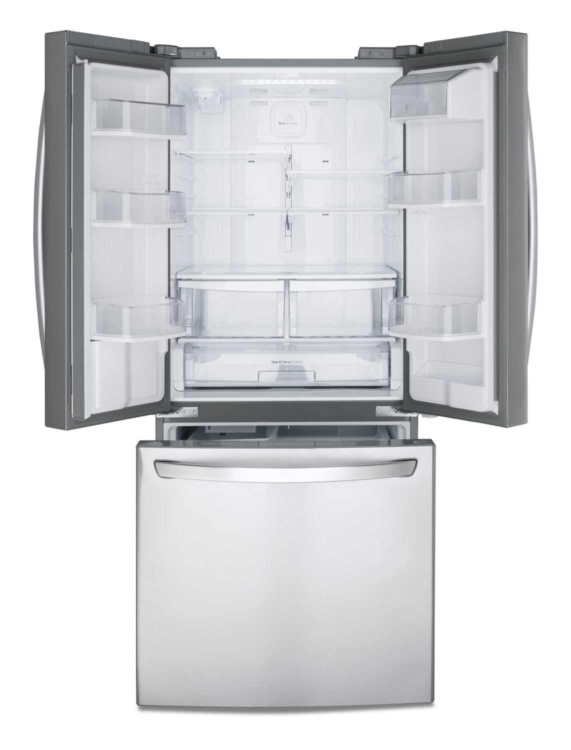 Make your house a home when you add this sleek and stylish 21.8-cubic-foot French-door refrigerator from LG. Lavish in the convenience of having an exterior dispenser that quenches your thirst with filtered water at the press of a button. Inside this energy-efficient fridge, spill-proof shelves help contain messes while a full-width pantry drawer is the perfect spot for your favourite deli snacks. With a smudge-resistant stainless steel finish, you can get the contemporary look you love without all the fuss.